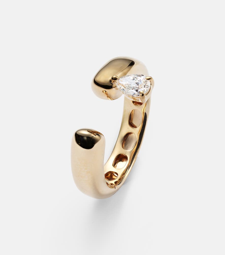 This Tube 14kt gold ring with diamond by Rainbow K is a magnificent and opulent statement piece. Made in France from 14kt yellow gold, this ring is a breathtaking masterpiece, featuring a pear-shaped diamond with a total carat weight of 0.30 and a VVS1 clarity grade. The design is a celebration of a sophisticated and graceful style and is perfect for adding high-end sparkle to any ensemble.