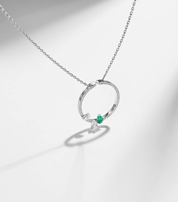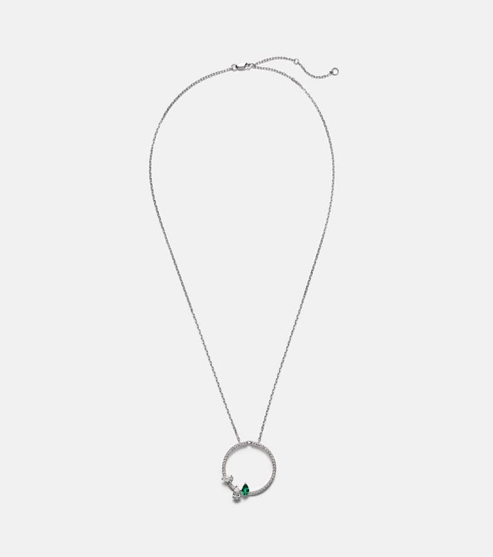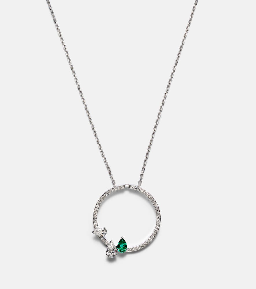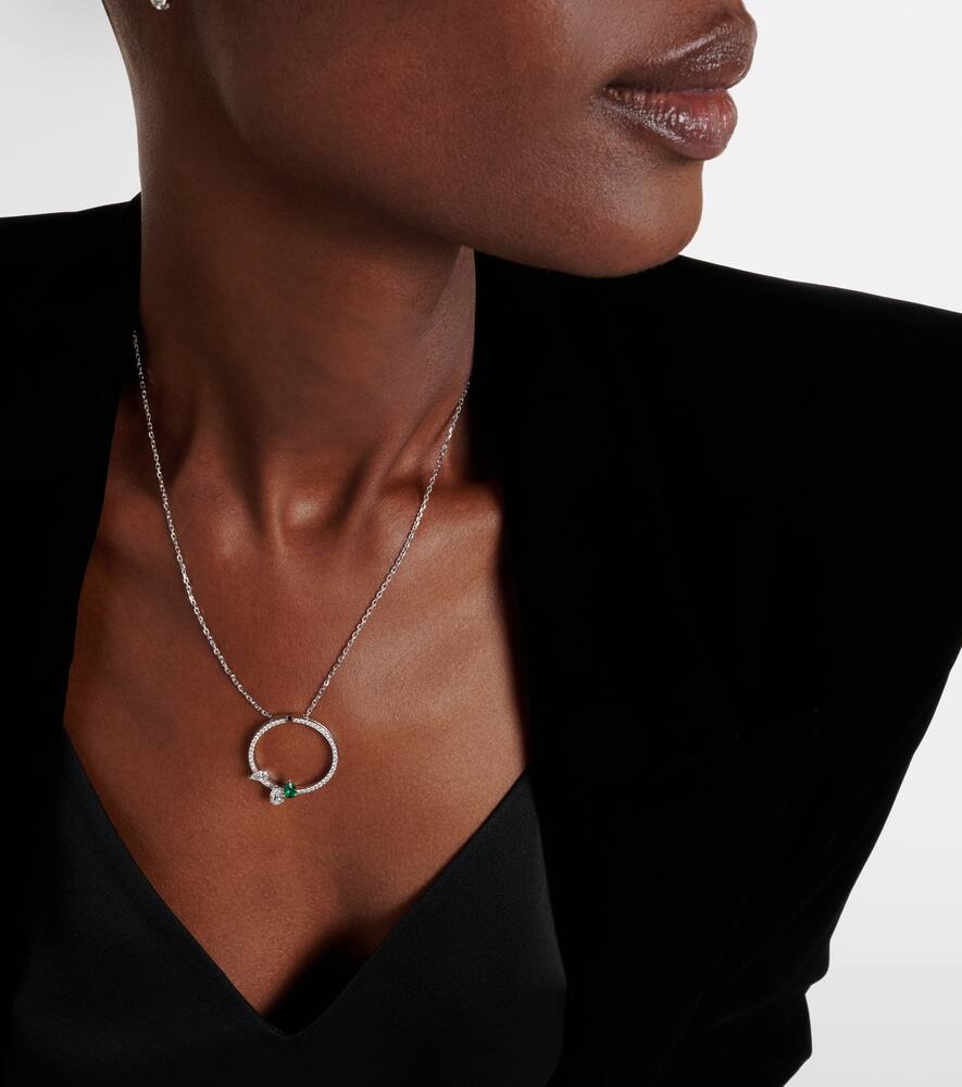 Serti Sur Vide 18kt white gold necklace with diamonds and emerald