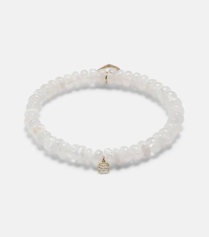 This 14kt gold and moonstone bracelet with diamonds by Sydney Evan is a magnificent and opulent statement. Made from moonstone beads, this bracelet is a breathtaking masterpiece, featuring a 14kt yellow gold charm with diamonds. The design is a celebration of a sophisticated and graceful style and is perfect for adding a touch of high-end glamour to your look.