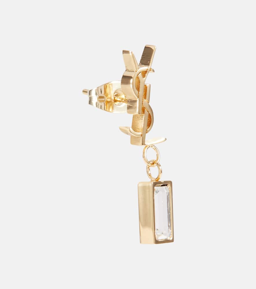 This Single YSL rhinestone-embellished earring by Saint Laurent is a bold and striking statement. Made in Italy from brass and glass, this single earring features the prominent YSL logo design with shimmering rhinestones. The design is a celebration of a confident and fearless approach to style and is perfect for adding a touch of high-end drama to your look. It can be worn on its own for a subtle statement or paired with other earrings for a bolder, more personalized style.