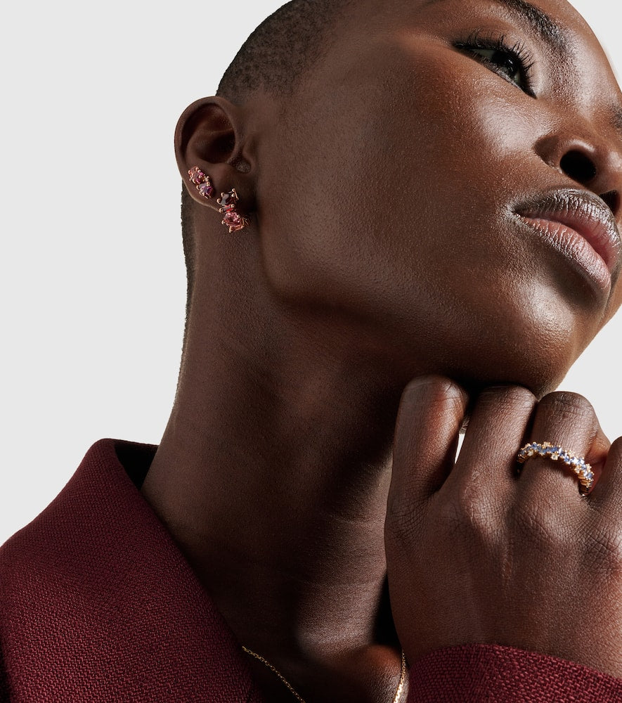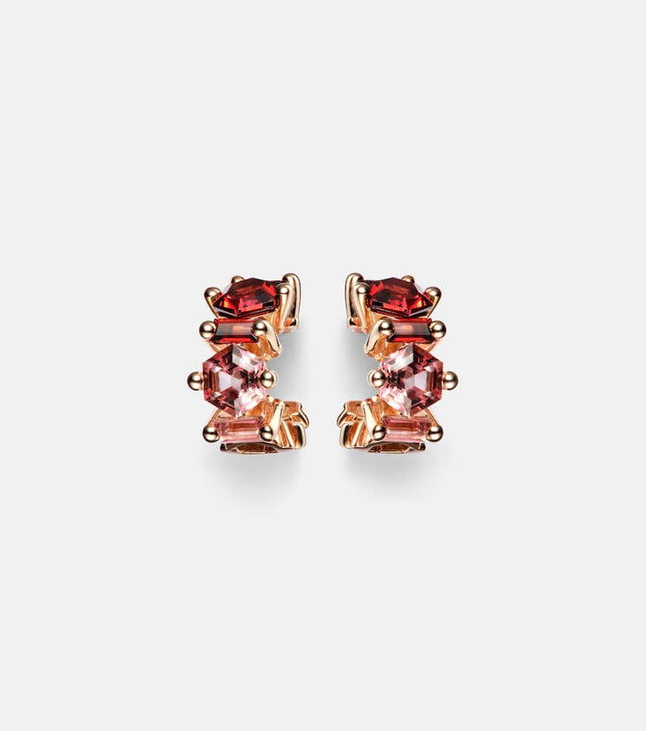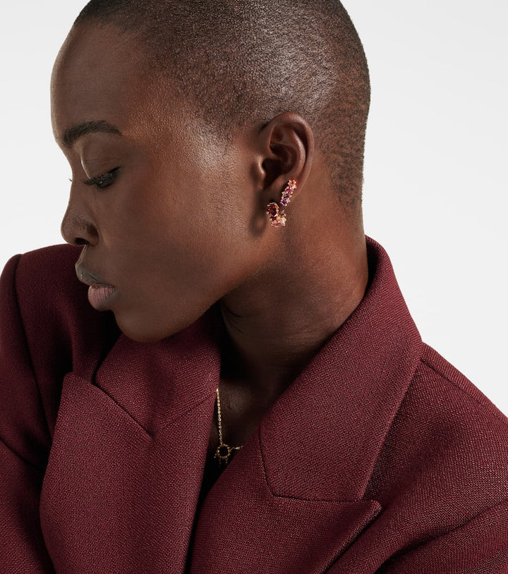 These 14kt rose gold earrings with garnet and topaz by Suzanne Kalan are a magnificent and opulent statement. Made in the USA from 14kt rose gold, these earrings are a breathtaking masterpiece, featuring a stunning array of garnet and topaz. The design is a celebration of a sophisticated and graceful style and is perfect for adding a touch of high-end glamour to your look. They are a versatile staple that you will love for years to come.