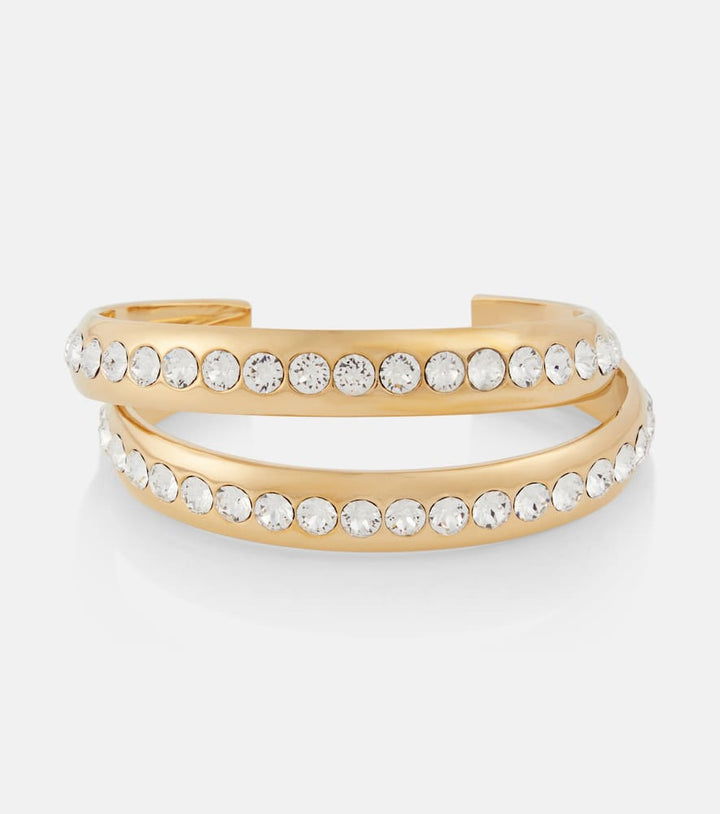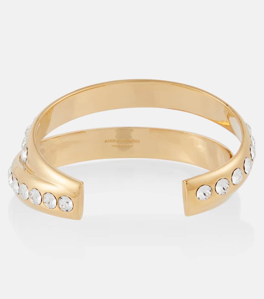 This Jahleel crystal-embellished bangle by Amina Muaddi is a bold and striking statement. Made in Italy from brass and glass, this bangle features a prominent design with shimmering crystals. The design is a celebration of a confident and fearless approach to style and is perfect for adding a touch of high-end drama to your look. It can be worn on its own for a subtle statement or layered with other bracelets for a bolder, more personalized style.