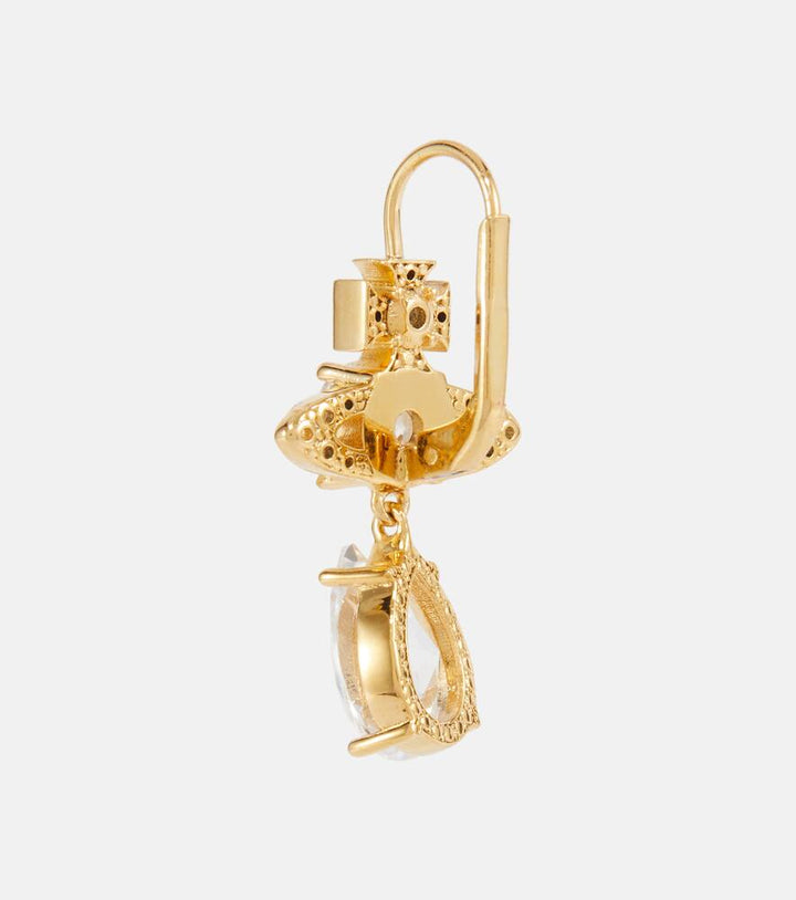 These Orb embellished earrings by Vivienne Westwood are a bold and striking new arrival. Made in Thailand from brass, these earrings feature a prominent orb design with shimmering crystals. The design is a celebration of a confident and fearless approach to style and is perfect for adding a touch of high-end drama to your look. They are a versatile staple that you will love for years to come.