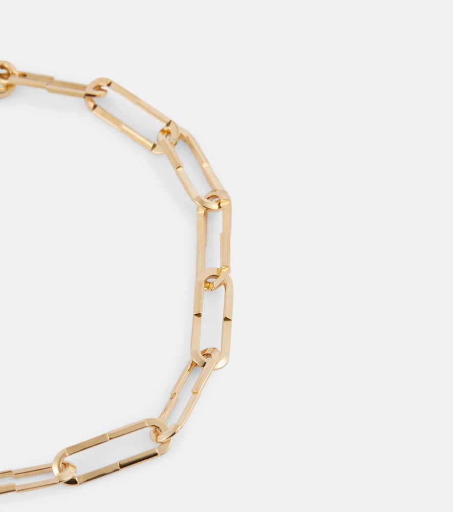 This Link To Love 18kt gold bracelet by Gucci is a modern and minimalist piece. Made in Italy from 18kt yellow gold, this bracelet features a sleek chain design. The design is a beautiful blend of a timeless aesthetic and modern luxury, perfect for adding a touch of refined style to your daily look. It can be worn on its own for a subtle statement or layered with other bracelets for a bolder, more personalized style.