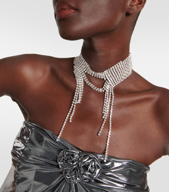 This Crystal-embellished choker by Magda Butrym is a bold and striking statement. Made in Poland from brass and crystals, this choker is a celebration of a confident and fearless approach to style and is perfect for adding a touch of high-end drama to your look. It can be worn on its own for a subtle statement or layered with other pieces for a bolder, more personalized style.