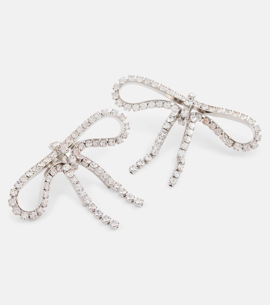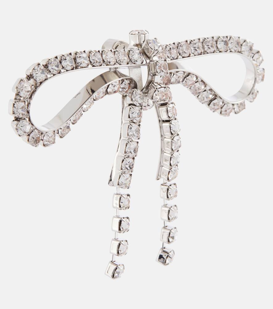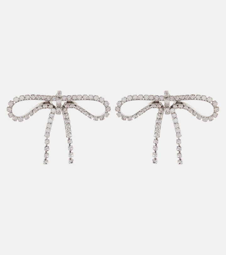 These Archive Ribbon embellished earrings by Balenciaga are a bold and striking statement. Made in Italy from brass, glass, and RAME, these earrings feature a prominent ribbon design with shimmering crystals. The design is a celebration of a confident and fearless approach to style and is perfect for adding a touch of high-end drama to your look. They are a versatile staple that you will love for years to come.