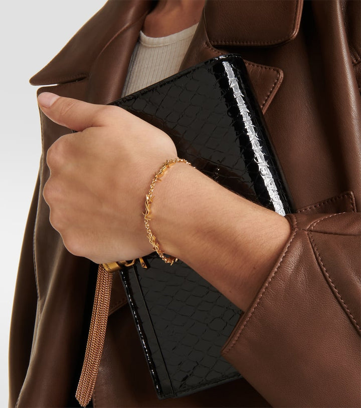 This YSL chain bracelet by Saint Laurent is a modern and minimalist piece. Made in Italy from brass, this bracelet features the prominent YSL logo design with a chain. The design is a beautiful blend of a timeless aesthetic and modern luxury, perfect for adding a touch of refined style to your daily look. It can be worn on its own for a subtle statement or layered with other bracelets for a bolder, more personalized style.