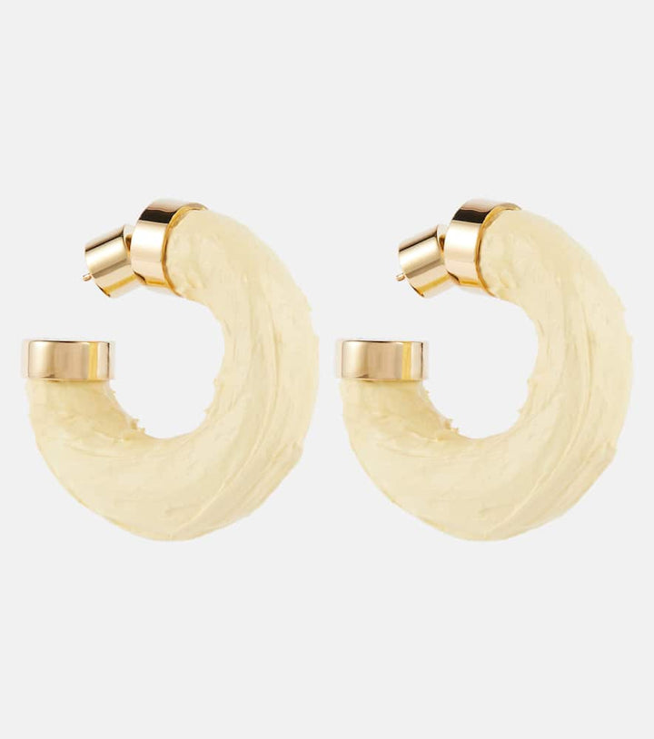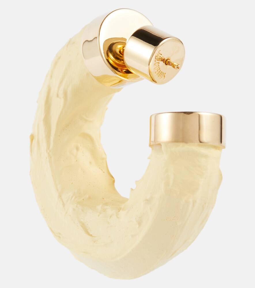 These Trompe-l'oeil hoop earrings by Jacquemus are a modern and minimalist piece. Made in Italy from brass and plastic, these earrings feature a sleek hoop design. The design is a beautiful blend of a timeless aesthetic and modern luxury, perfect for adding a touch of refined style to your daily look. They are a versatile staple that you will love for years to come.