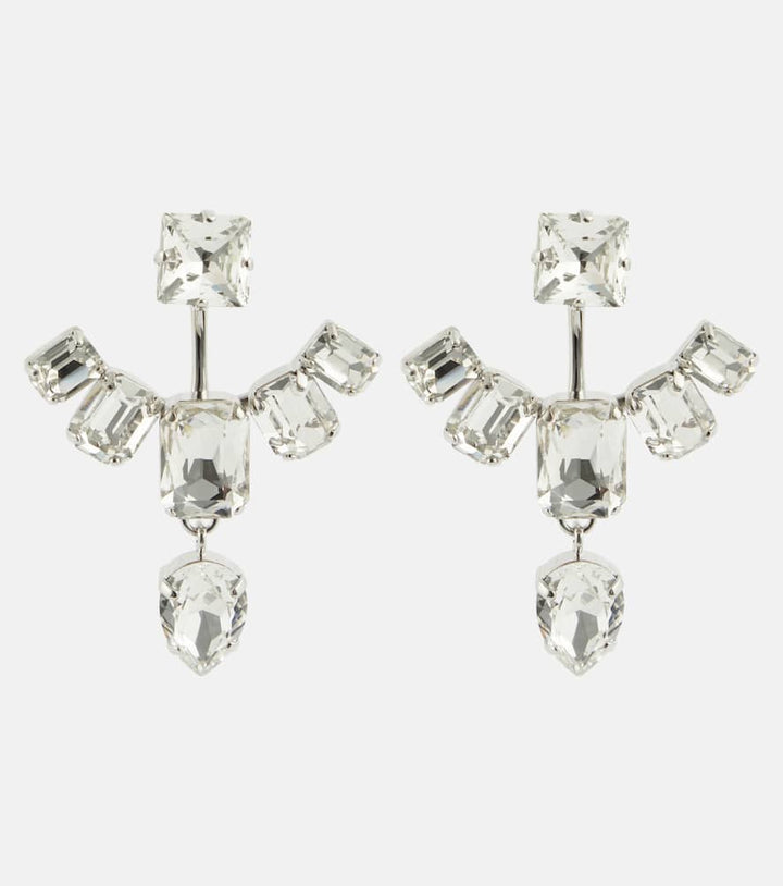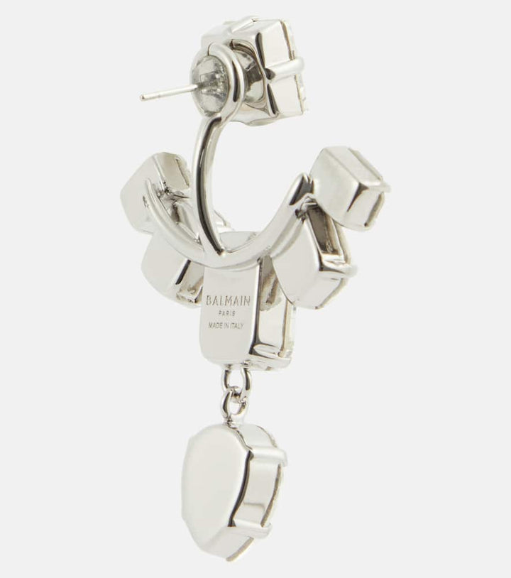 These Crystal pendant earrings by Balmain are a bold and striking statement. Made in Italy from brass and glass, these earrings feature a prominent pendant design with shimmering glass stones. The design is a celebration of a confident and fearless approach to style and is perfect for adding a touch of high-end drama to your look. They are a versatile staple that you will love for years to come.