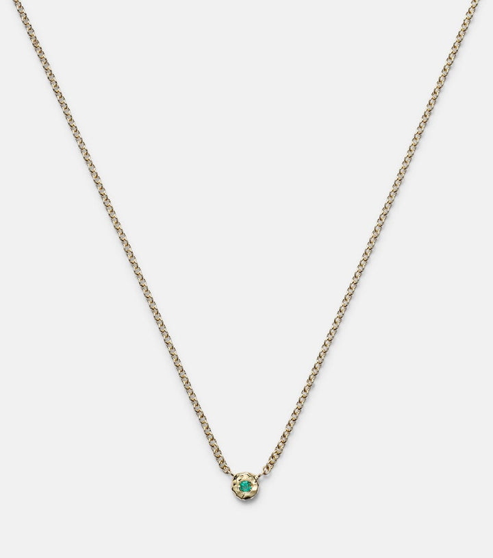 This Nesting Gem 18kt gold necklace with emerald by Octavia Elizabeth is a magnificent and opulent statement. Made in the USA from 18kt yellow gold, this necklace is a breathtaking masterpiece, featuring a brilliant emerald totaling 0.03 carats. The design is a celebration of a sophisticated and graceful style and is perfect for adding a touch of high-end glamour to your look. It can be worn on its own for a subtle statement or layered with other pieces for a bolder, more personalized style.