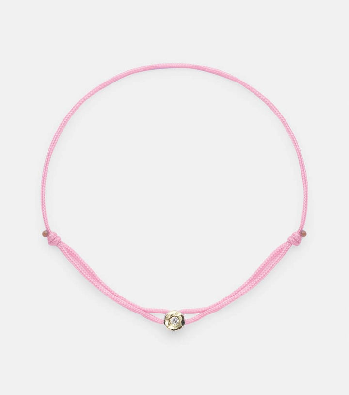 This Parachute Nesting Gem 18kt gold bracelet with diamond by Octavia Elizabeth is a magnificent and opulent statement. Made in the USA from 18kt yellow gold and textile cord, this bracelet is a breathtaking masterpiece, featuring a total carat weight of 0.03 of brilliant diamonds. The design is a celebration of a sophisticated and graceful style and is perfect for adding a touch of high-end glamour to your look. It can be worn on its own for a subtle statement or layered with other bracelets for a bolder, more personalized style.