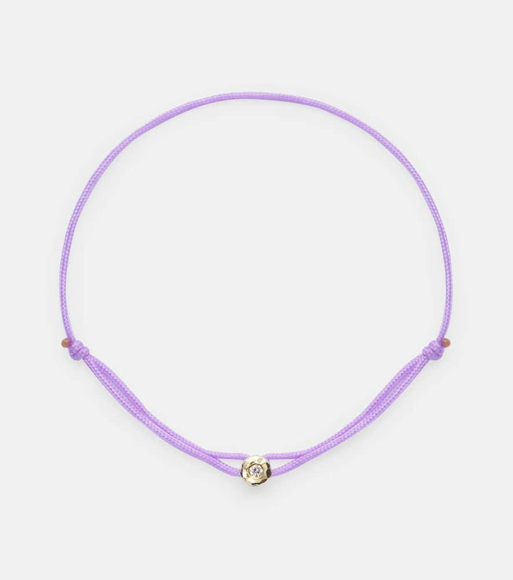 This Parachute Nesting Gem 18kt gold bracelet with diamond by Octavia Elizabeth is a magnificent and opulent statement. Made in the USA from 18kt yellow gold and textile cord, this bracelet is a breathtaking masterpiece, featuring a total carat weight of 0.03 of brilliant diamonds. The design is a celebration of a sophisticated and graceful style and is perfect for adding a touch of high-end glamour to your look. It can be worn on its own for a subtle statement or layered with other bracelets for a bolder, more personalized style.