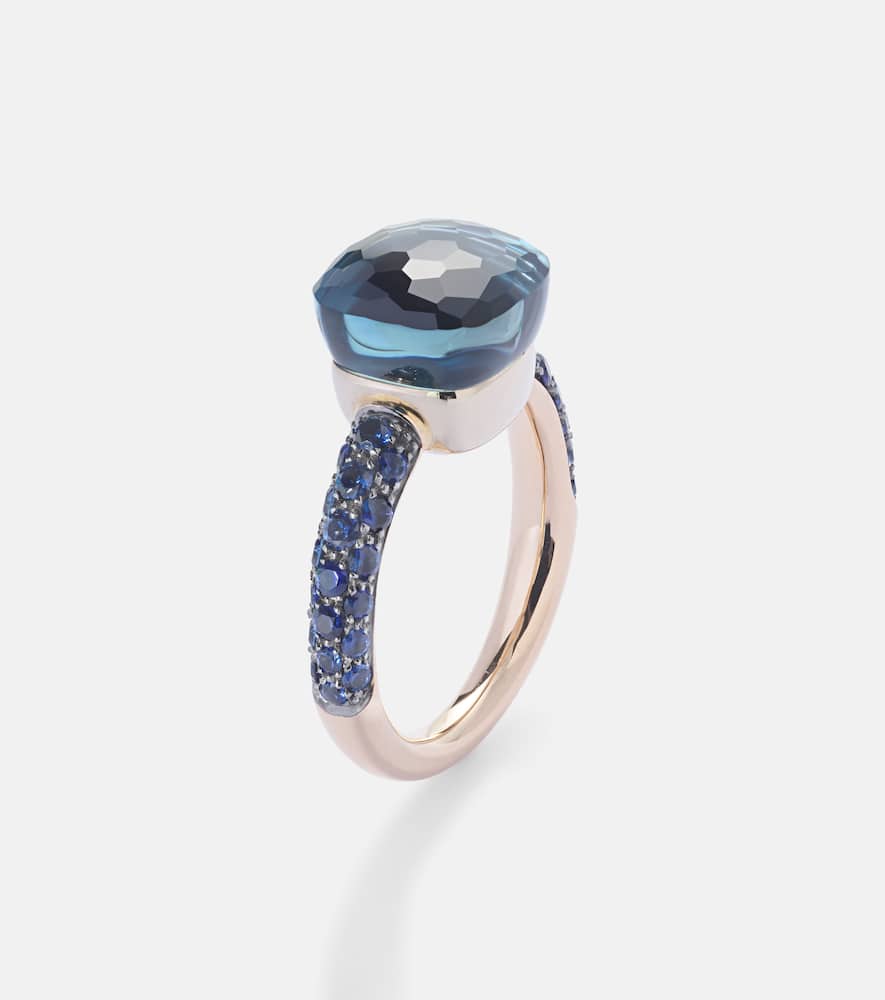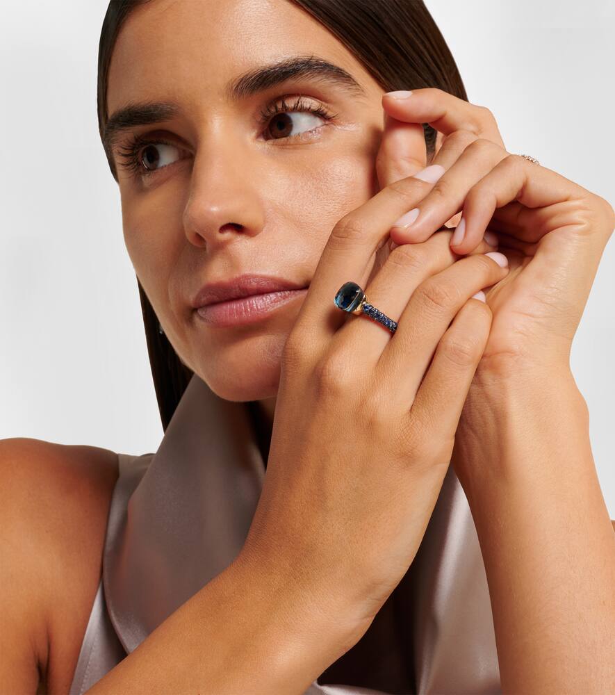 This Nudo 18kt rose and white gold ring with London blue topaz by Pomellato is a magnificent and opulent statement piece. Made in Italy from 18kt rose and white gold, this ring is a breathtaking masterpiece, featuring a stunning array of London blue topaz. The design is a celebration of a sophisticated and graceful style and is perfect for adding high-end sparkle to any ensemble. It can be worn on its own for a subtle statement or stacked with other rings for a bolder, more personalized style.