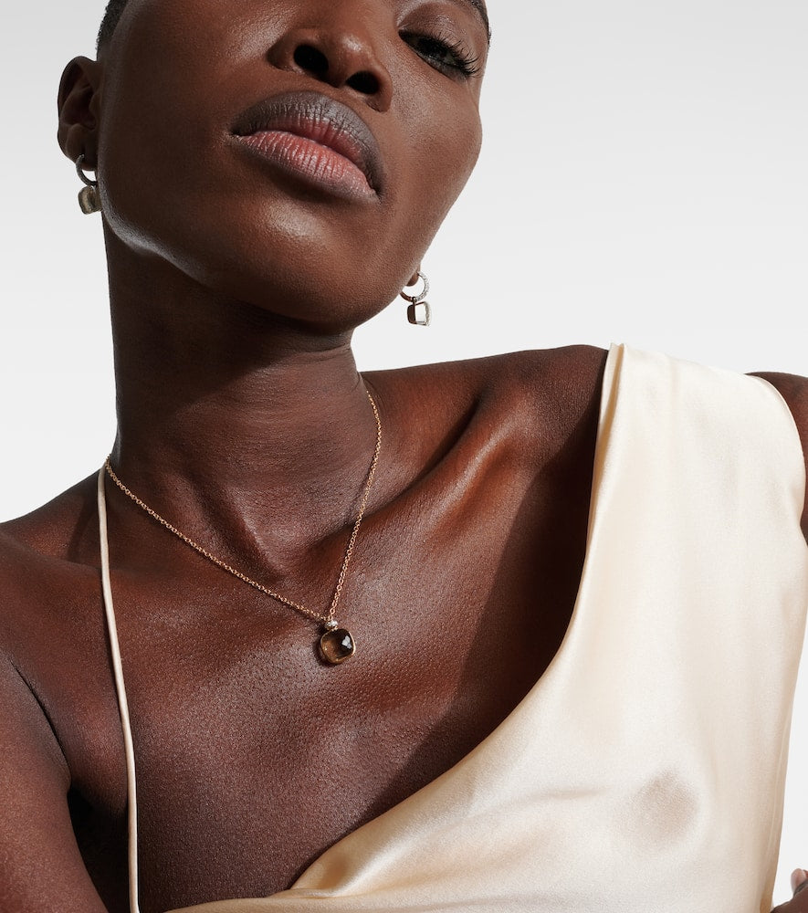 This Nudo 18kt gold necklace with prasiolite and diamonds by Pomellato is a magnificent and opulent statement. Made in Italy from 18kt rose and white gold, this necklace is a breathtaking masterpiece, featuring a stunning prasiolite and 0.11 carats of brilliant diamonds. The design is a celebration of a sophisticated and graceful style and is perfect for adding a touch of high-end glamour to your look. It can be worn on its own for a subtle statement or layered with other pieces for a bolder, more personalized style.