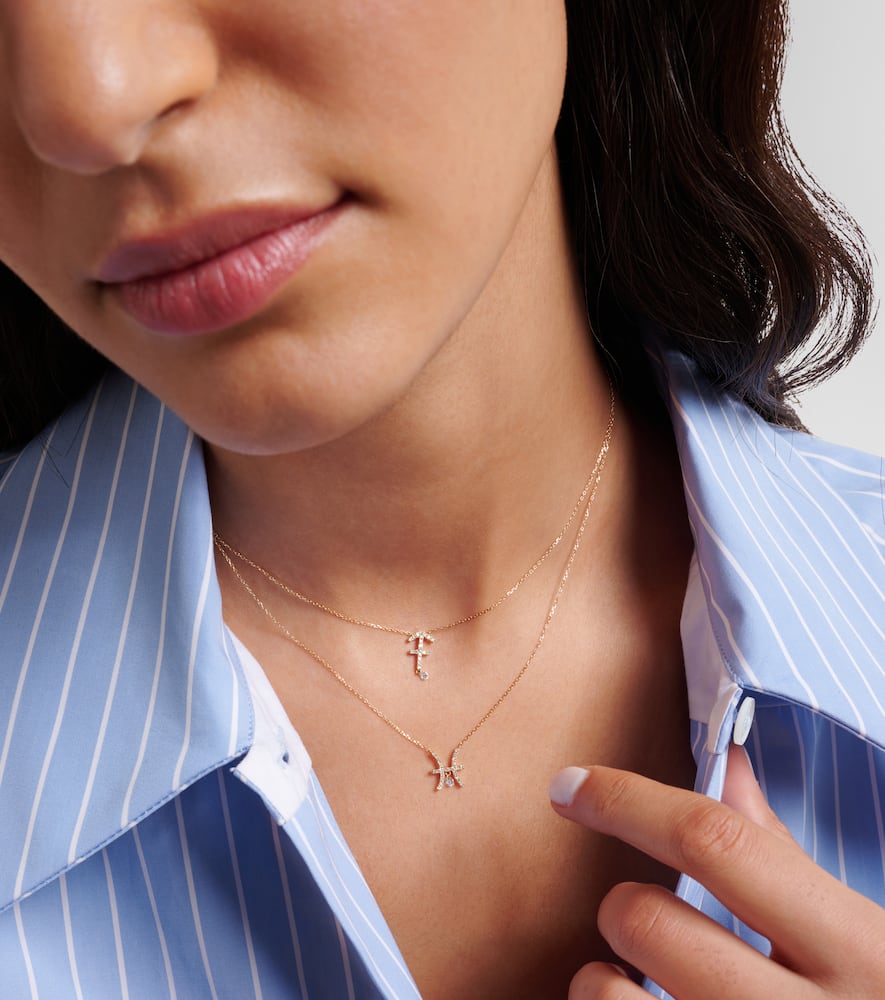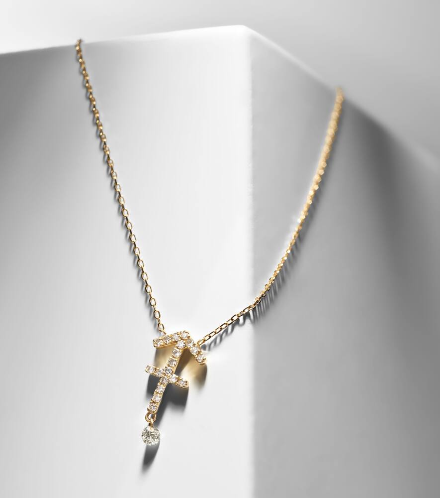 This Sagittarius 18kt gold necklace with diamonds by Persee is a magnificent and opulent statement. Made in France from 18kt yellow gold, this necklace is a breathtaking masterpiece, featuring a stunning array of diamonds with a total carat weight of 0.535. The design is a celebration of a sophisticated and graceful style and is perfect for adding a touch of high-end glamour to your look. It can be worn on its own for a subtle statement or layered with other pieces for a bolder, more personalized style.