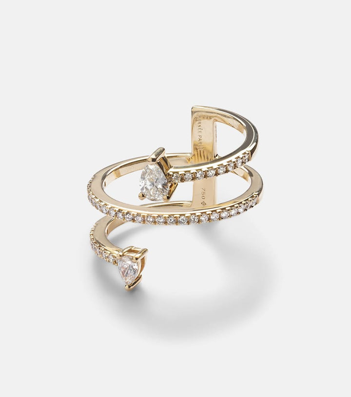 This Héra 18kt gold ring with diamonds by Persee is a magnificent and opulent statement piece. Made in Belgium from 18kt yellow gold, this ring is a breathtaking masterpiece, featuring a stunning array of diamonds with a total carat weight of 1.04. The design is a celebration of a sophisticated and graceful style and is perfect for adding high-end sparkle to any ensemble. It can be worn on its own for a subtle statement or stacked with other rings for a bolder, more personalized style.