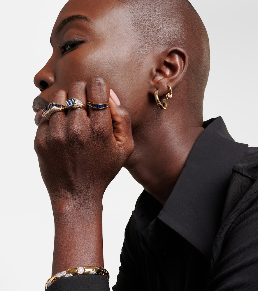 This Wave 9kt gold ring with sapphires by Rainbow K is a magnificent and opulent statement piece. Made in France from 9kt yellow gold, this ring is a breathtaking masterpiece, featuring a stunning array of sapphires. The design is a celebration of a sophisticated and graceful style and is perfect for adding high-end sparkle to any ensemble. It can be worn on its own for a subtle statement or stacked with other rings for a bolder, more personalized style.