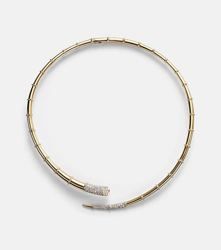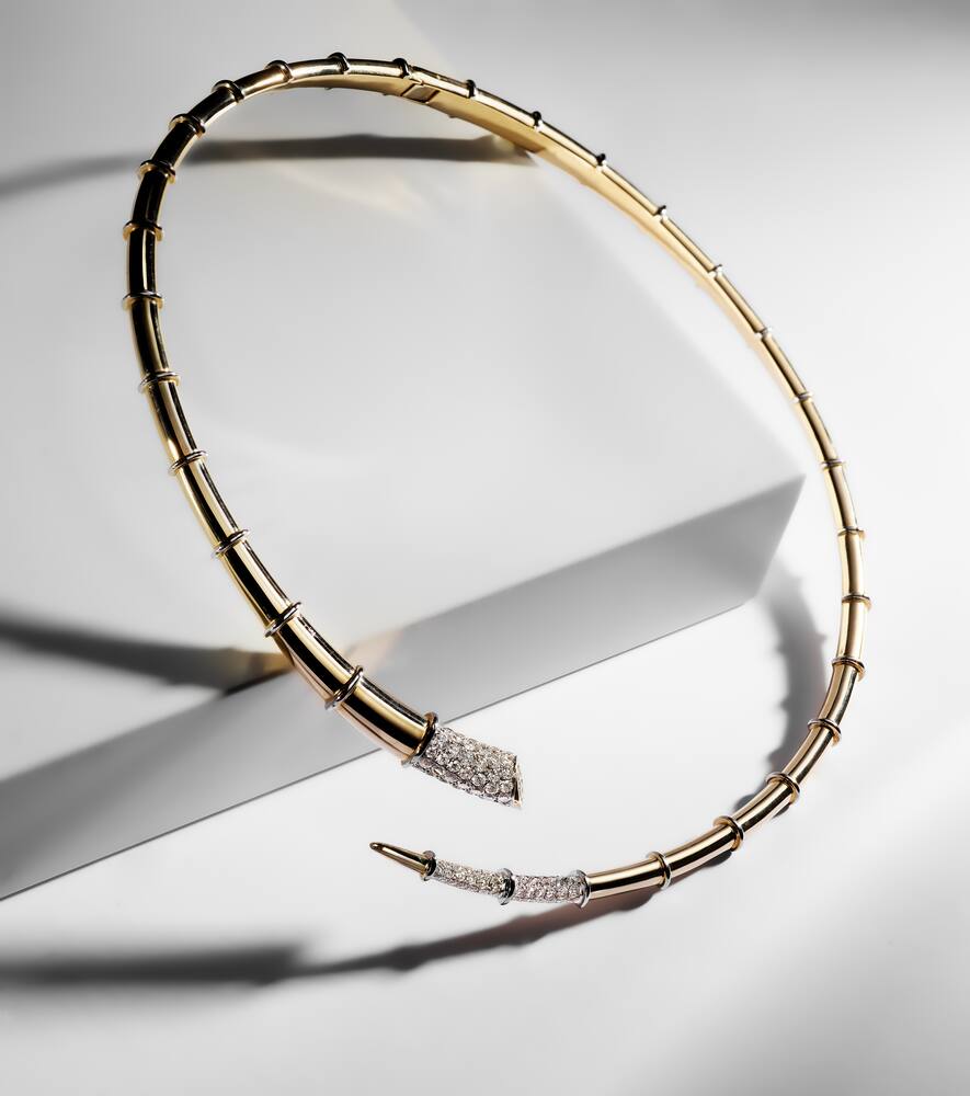 This necklace is made in Greece from 14kt yellow gold with diamonds. It has a clasp fastening and features natural diamonds only. It has a min width of 2mm (0.1") and a max width of 7mm (0.3").