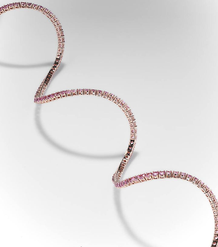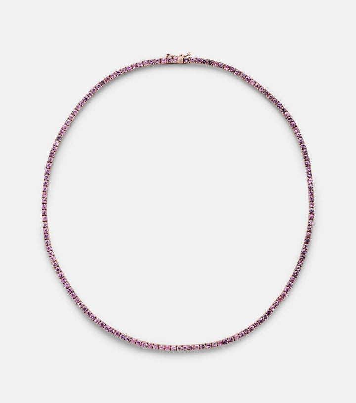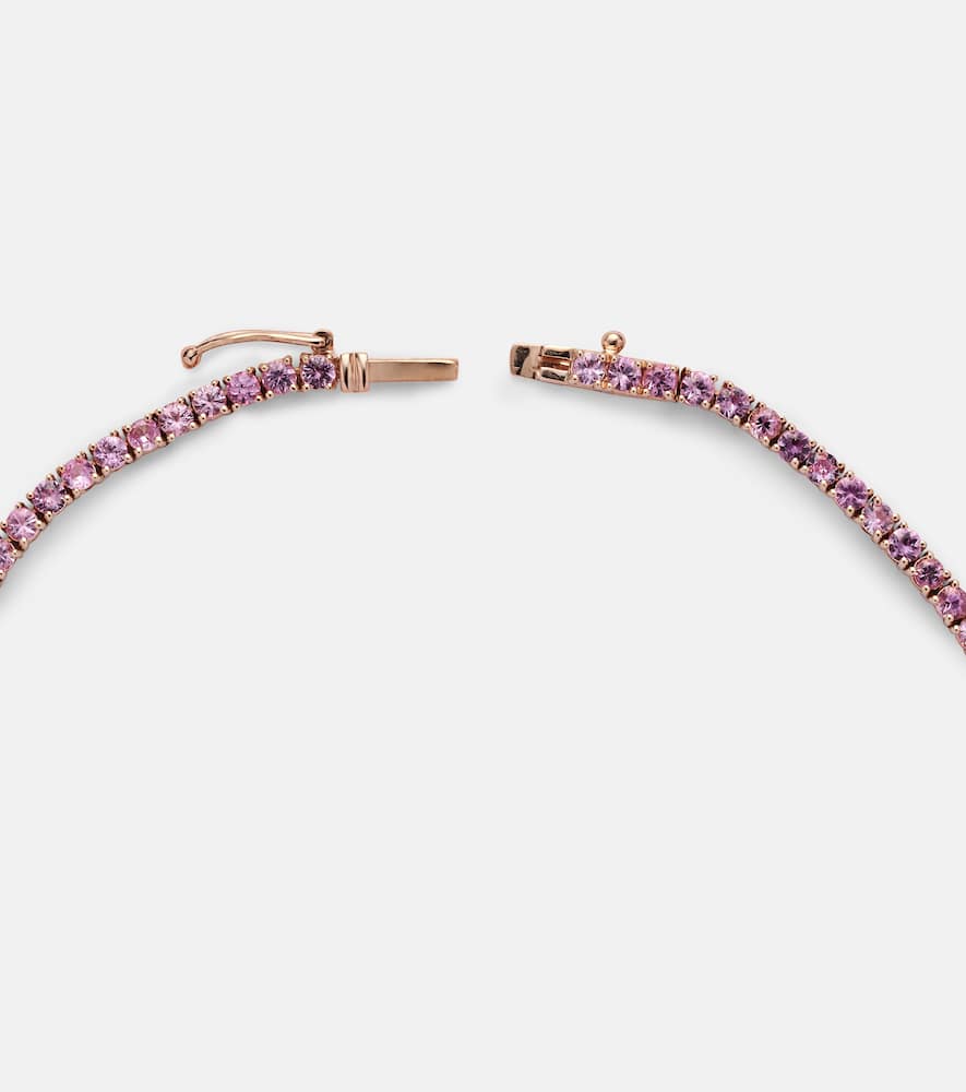 This 14kt rose gold tennis necklace with pink sapphires by Roxanne First is a magnificent and opulent statement. Made in the UK from 14kt rose gold, this necklace is a breathtaking masterpiece, featuring a stunning array of pink sapphires. The design is a celebration of a sophisticated and graceful style and is perfect for adding a touch of high-end glamour to your look. It can be worn on its own for a subtle statement or layered with other pieces for a bolder, more personalized style.