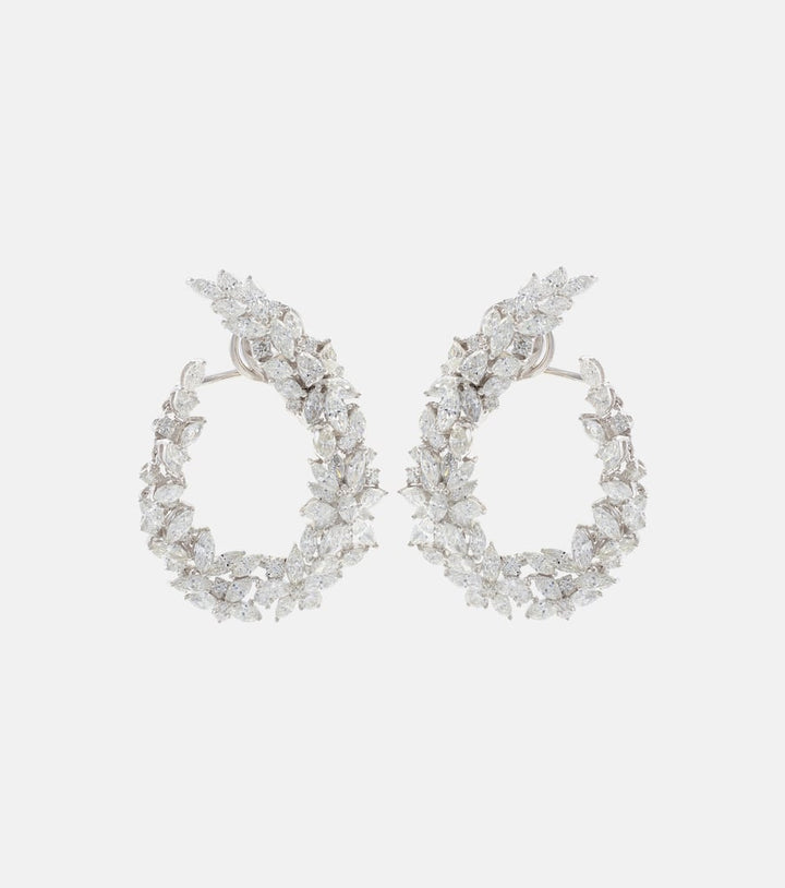 These earrings are made in Lebanon from 18ct white gold with 1.78ct diamonds. They have a post-back fastening and are for pierced ears. They have a length of 45mm (1.75") and a max width of 30mm (1.2").