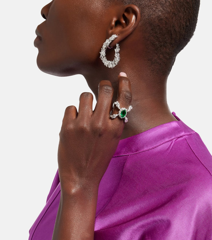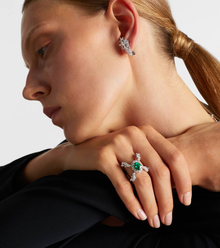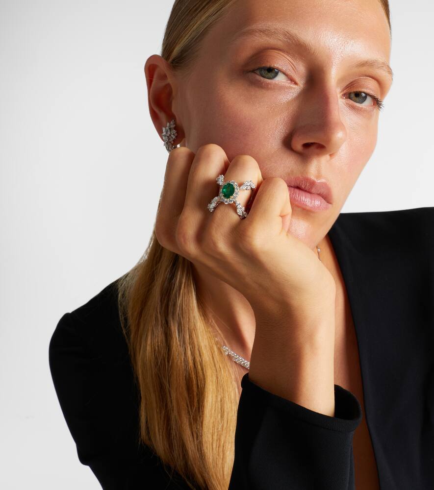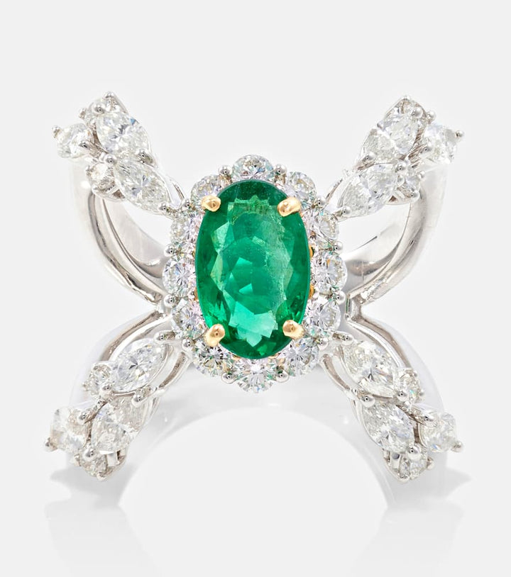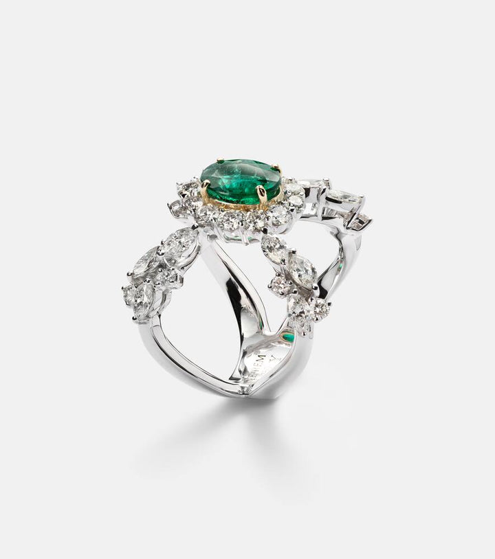 Reign Supreme 18kt white gold ring with diamonds and emeralds