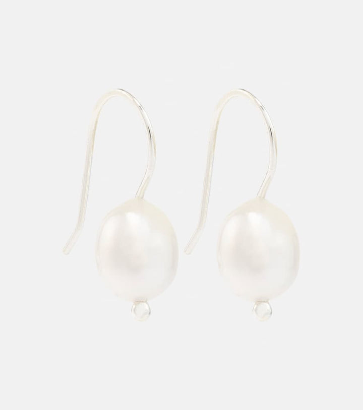 These earrings are handmade in the USA from sterling silver with South Sea pearls. They have a hook closure and are for pierced ears. They have a length of 20mm (0.8") and a max width of 7mm (0.3").