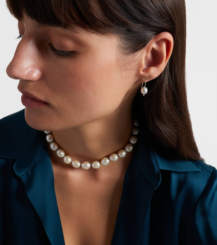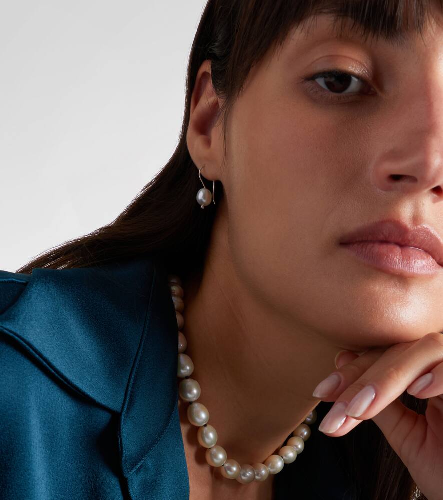 These South Sea Mermaid sterling silver earrings with pearls by Sophie Buhai are a modern and minimalist piece. Handmade in the USA from sterling silver, these earrings feature a sleek design with South Sea pearls. The design is a beautiful blend of a timeless aesthetic and modern luxury, perfect for adding a touch of refined style to your daily look. They are a versatile staple that you will love for years to come.