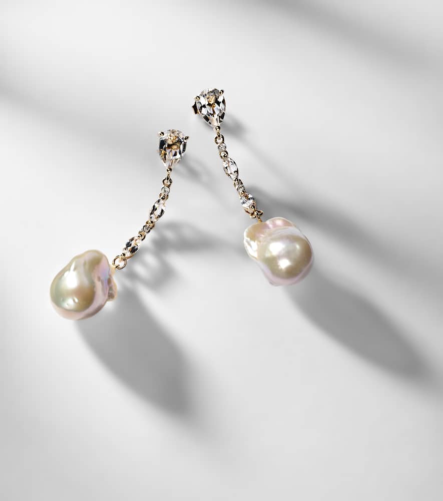 14kt gold earrings with pearls, diamonds, and topaz