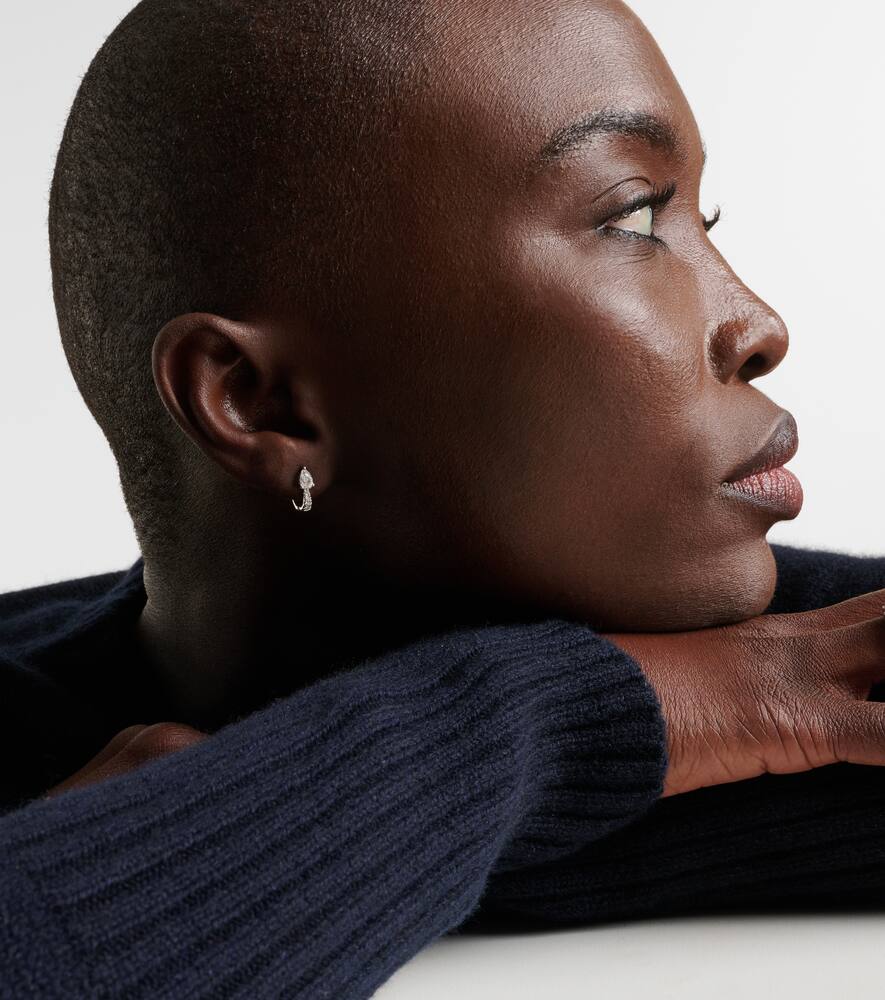 These 18kt white gold huggies with diamonds by Anita Ko are a magnificent and opulent statement. Made in the USA from 18kt white gold, these huggie earrings are a breathtaking masterpiece, featuring a total carat weight of 0.78 of brilliant diamonds. The design is a celebration of a sophisticated and graceful style and is perfect for adding a touch of high-end glamour to your look. They are a versatile staple that you will love for years to come.