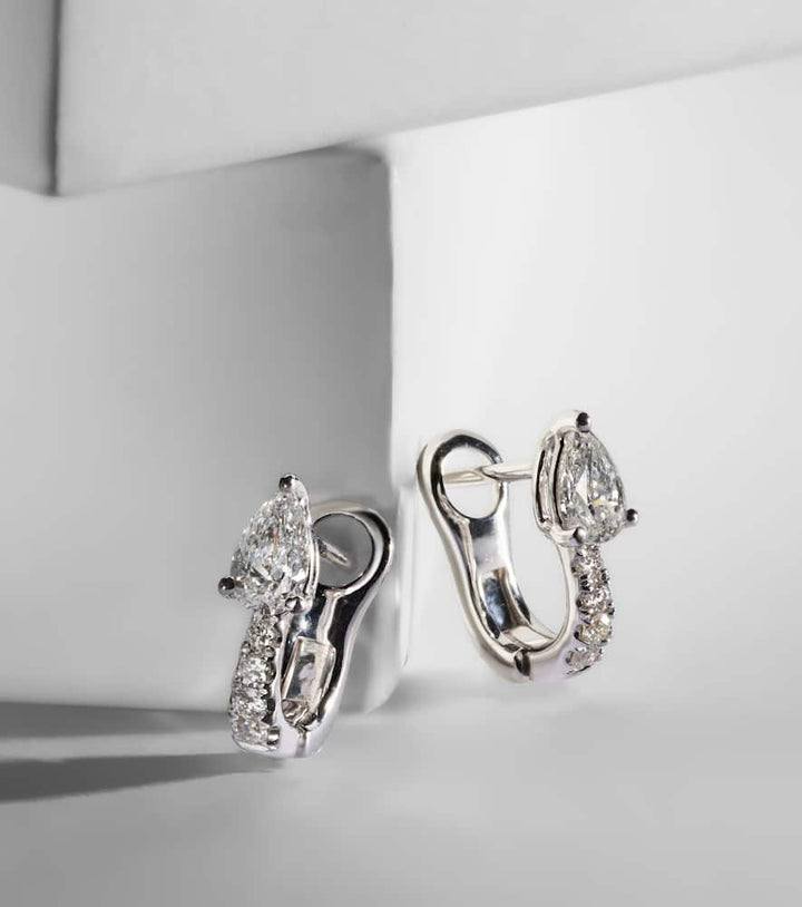 These earrings are made in the USA from 18ct white gold with 0.68ctw and 0.1ctw diamonds. They have a post-back fastening and are for pierced ears. They have a length of 6mm (0.25") and a max width of 3mm (0.1").