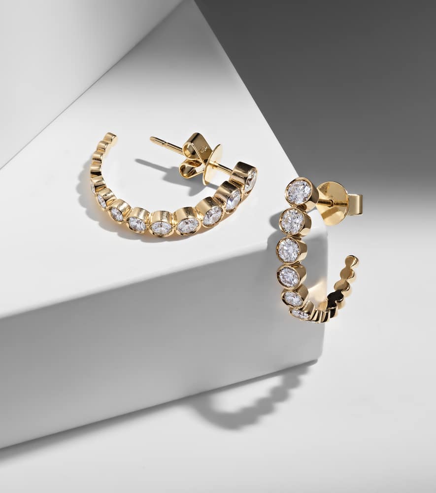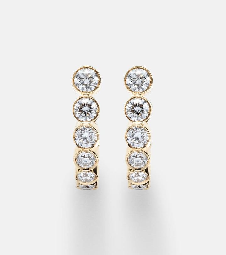 Crafted from 18kt gold, these earrings feature 1.67ct of round-cut, bead-set natural diamonds. Made in Italy, they have a post-back fastening and measure 17mm (0.65") in length with a max. width of 4mm (0.15").