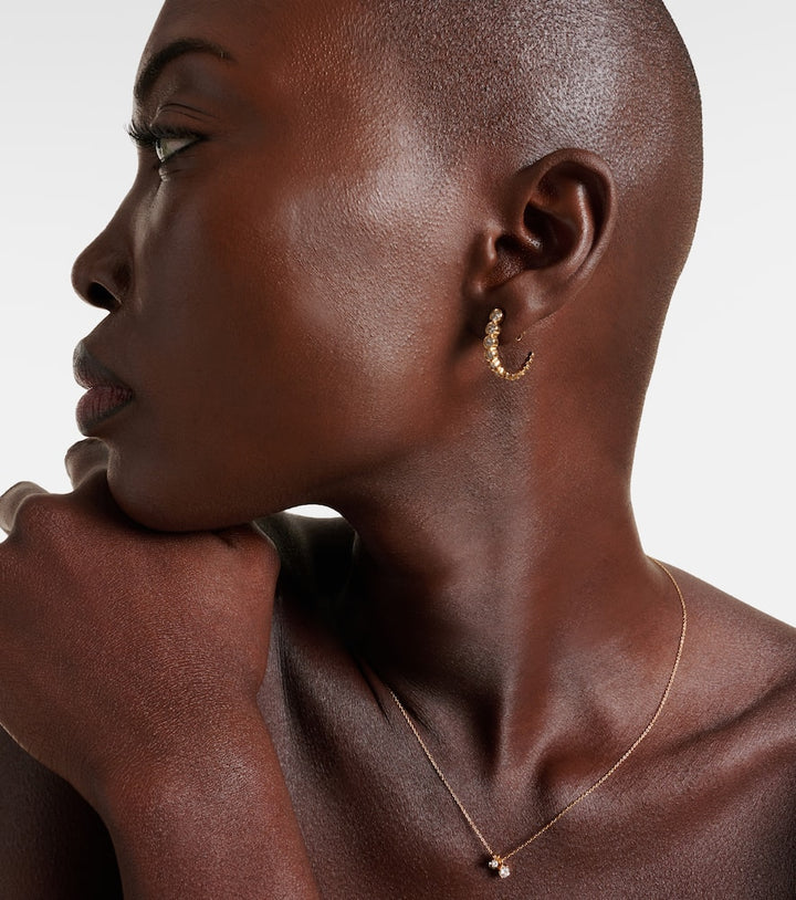 These Boucle Ensemble 18kt gold earrings with diamonds by Sophie Bille Brahe are a stunning and artistic expression of modern luxury. The earrings feature a delicate yet intricate design of clustered diamonds, each in a bead setting to maximize its sparkle. The asymmetrical arrangement of the gems creates a sense of organic movement and grace, making them perfect for adding a touch of sophisticated glamour to any outfit. They embody a unique and refined aesthetic that will be cherished for years.