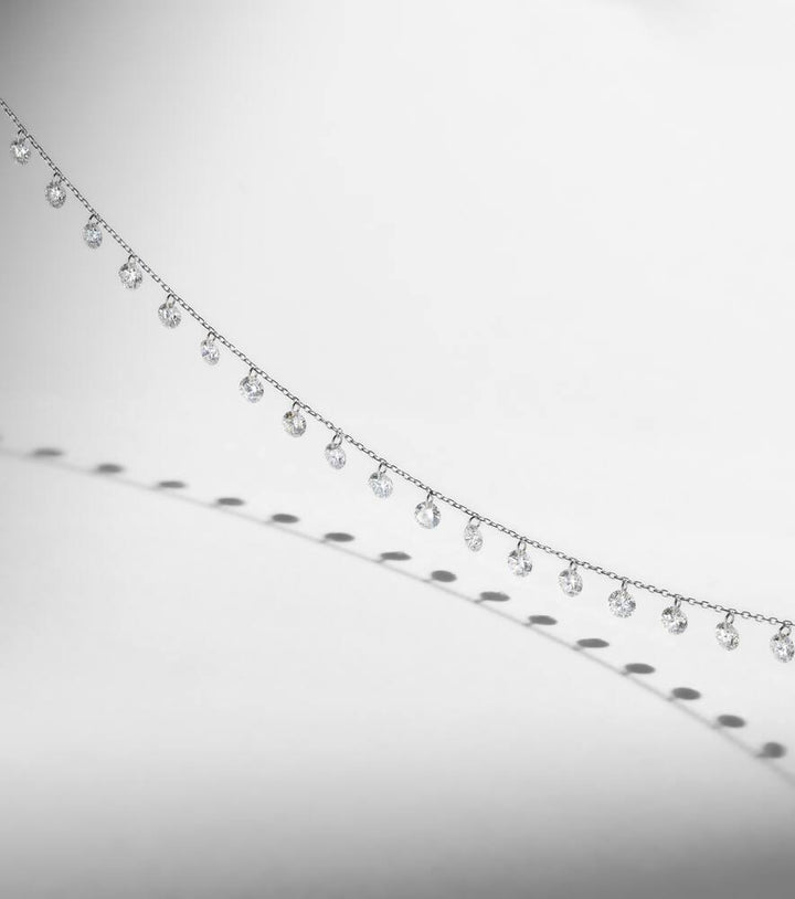 Crafted from 18kt white gold, this necklace features 2.57ct of round-cut white diamonds. Made in Belgium, it has a lobster-clasp fastening and an adjustable length from 30cm (12") to 43cm (17") with a max. width of 3mm (0.1").