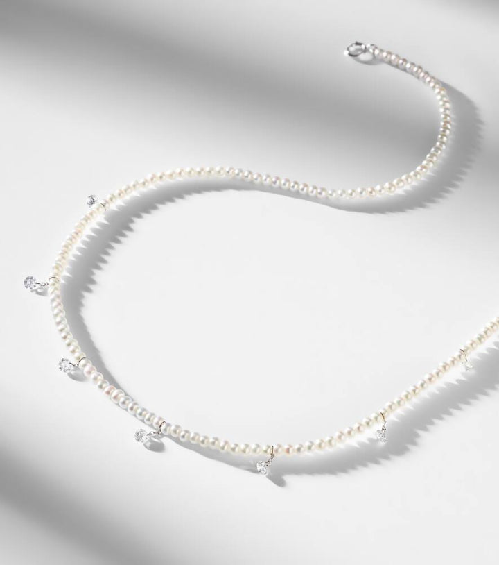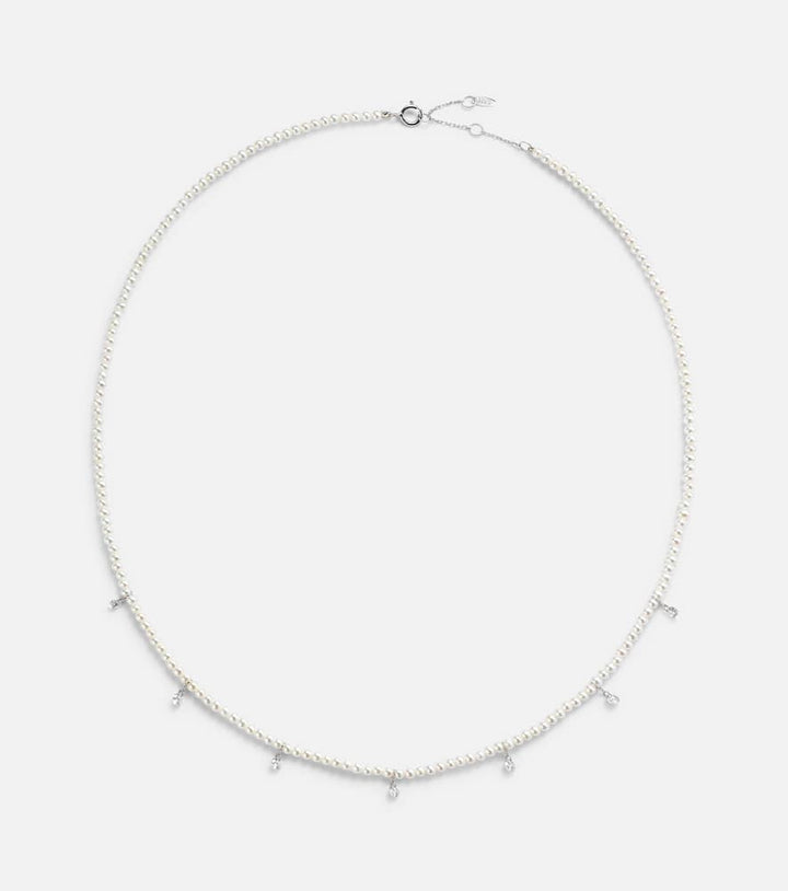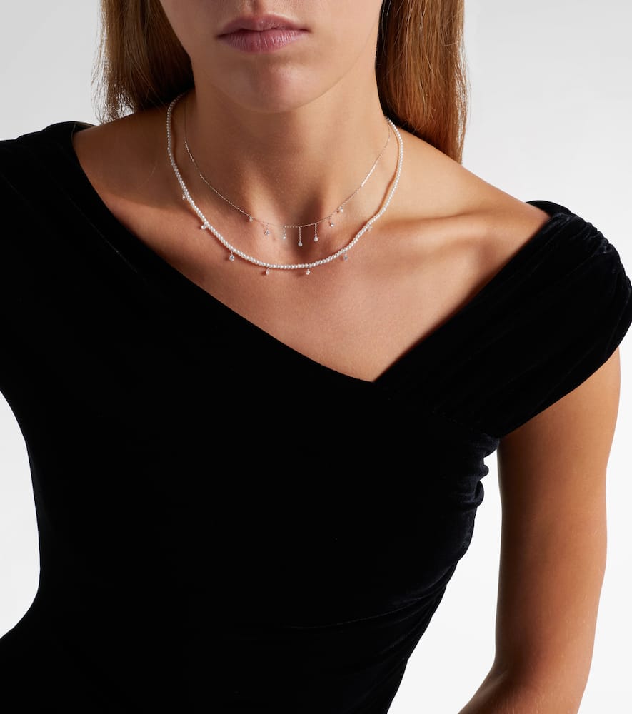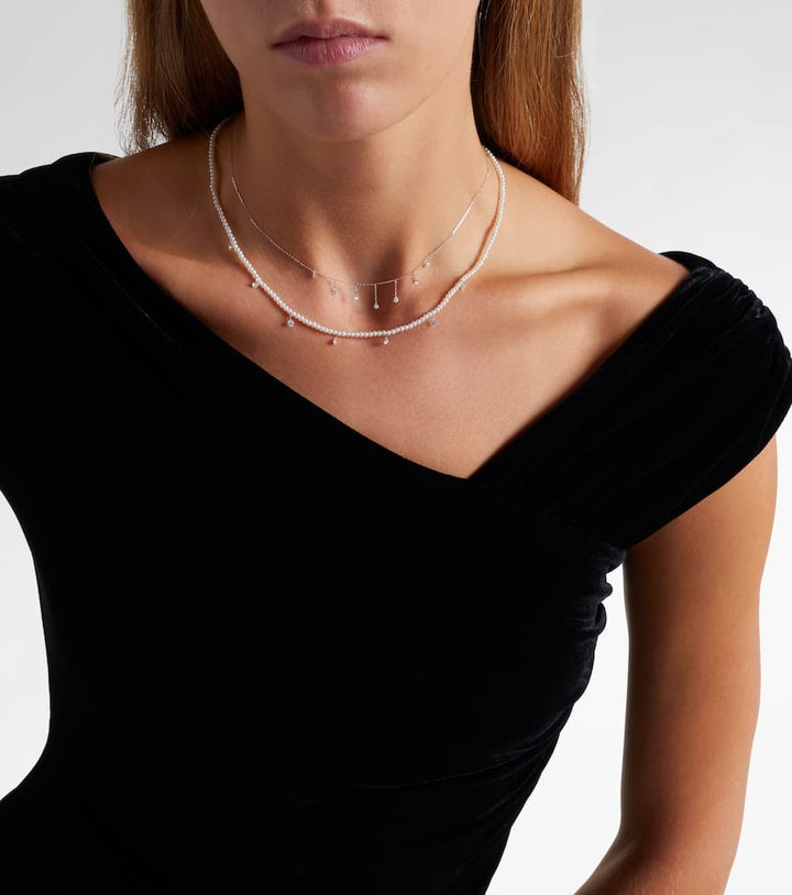 Persée 18kt white gold necklace with diamonds and pearls