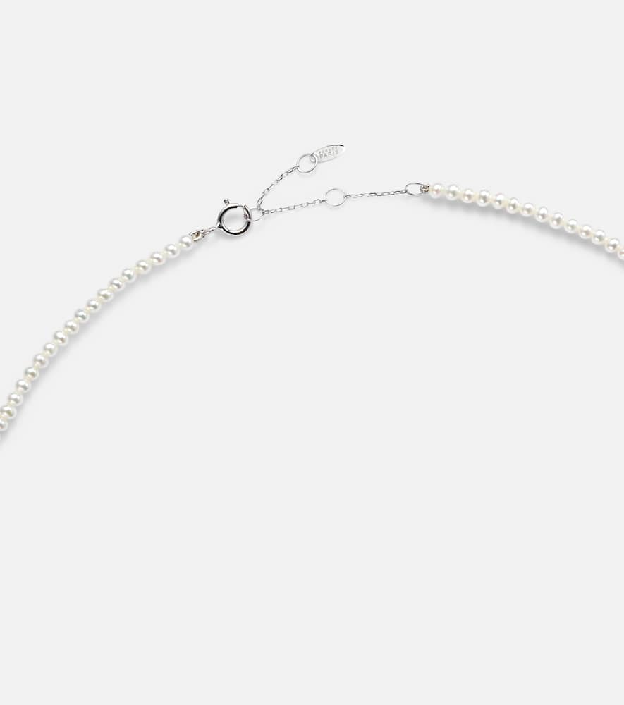 Crafted from 18kt white gold and pearls (Pinctada Fucata, captured in Japan), this necklace features 7 oval-cut diamonds totaling 0.49ct. Made in Belgium, it has a clasp fastening and measures 40cm (15.5") to 43cm (17") in length, with a pendant width of 2mm (0.1").