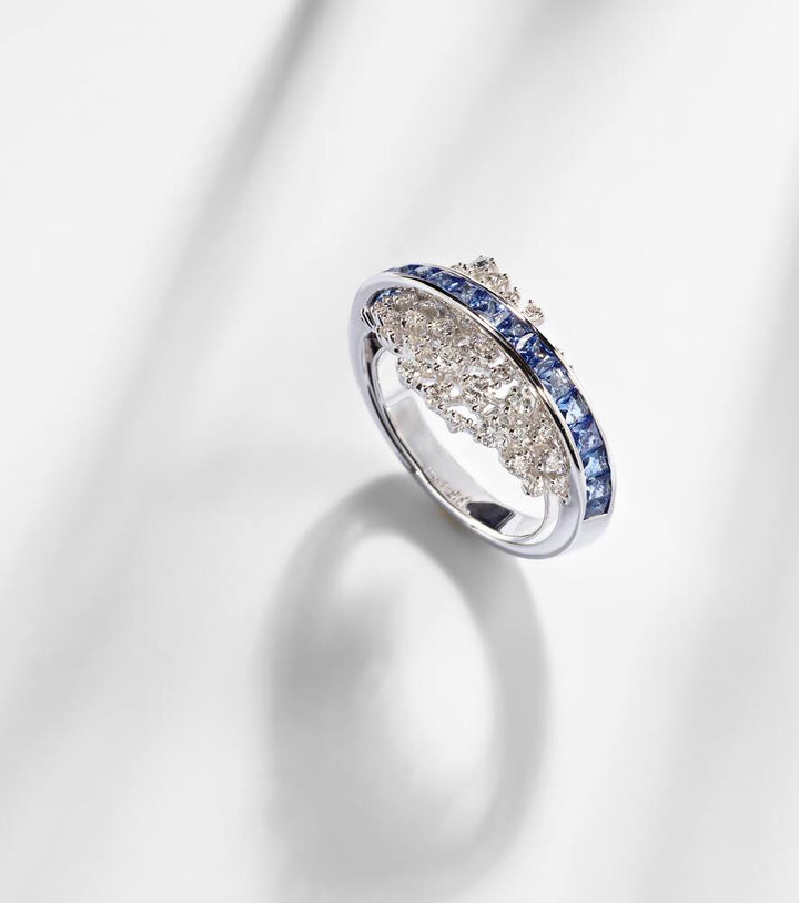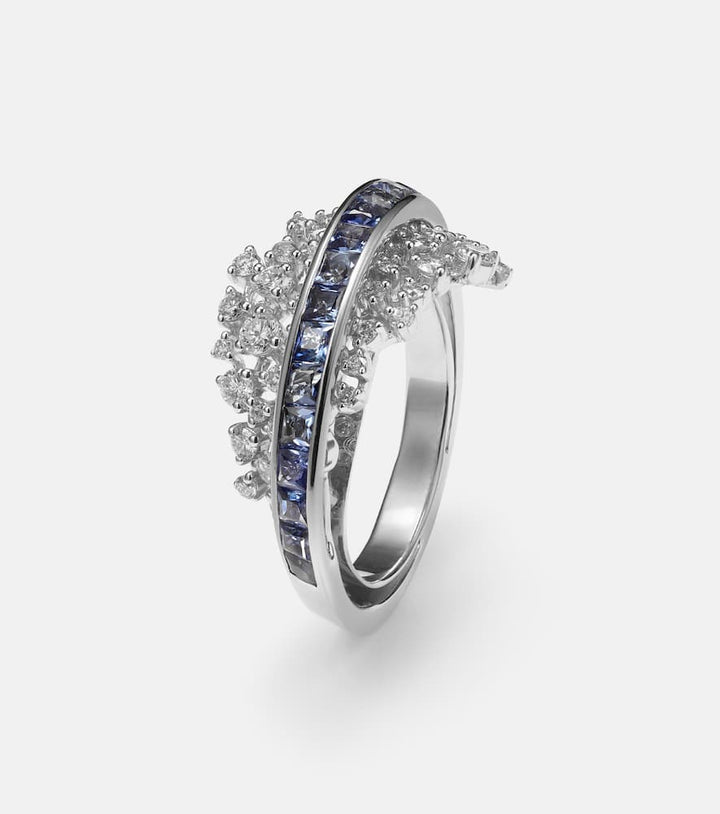 Scatter Energy 18kt white gold ring with diamonds and sapphires
