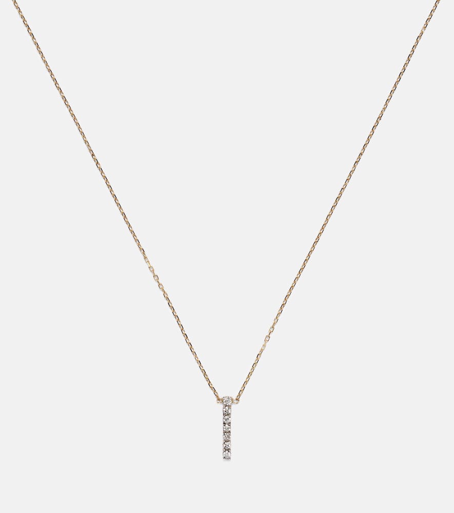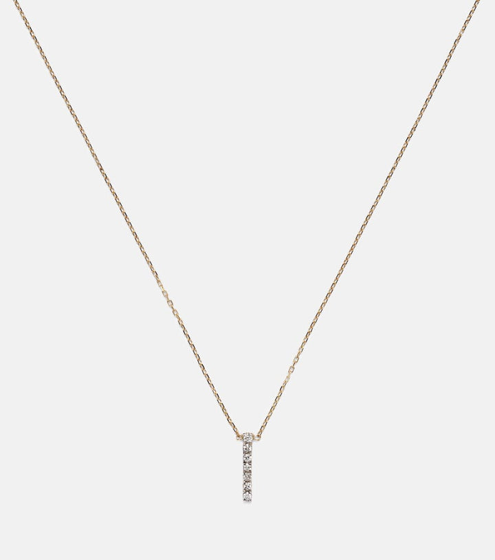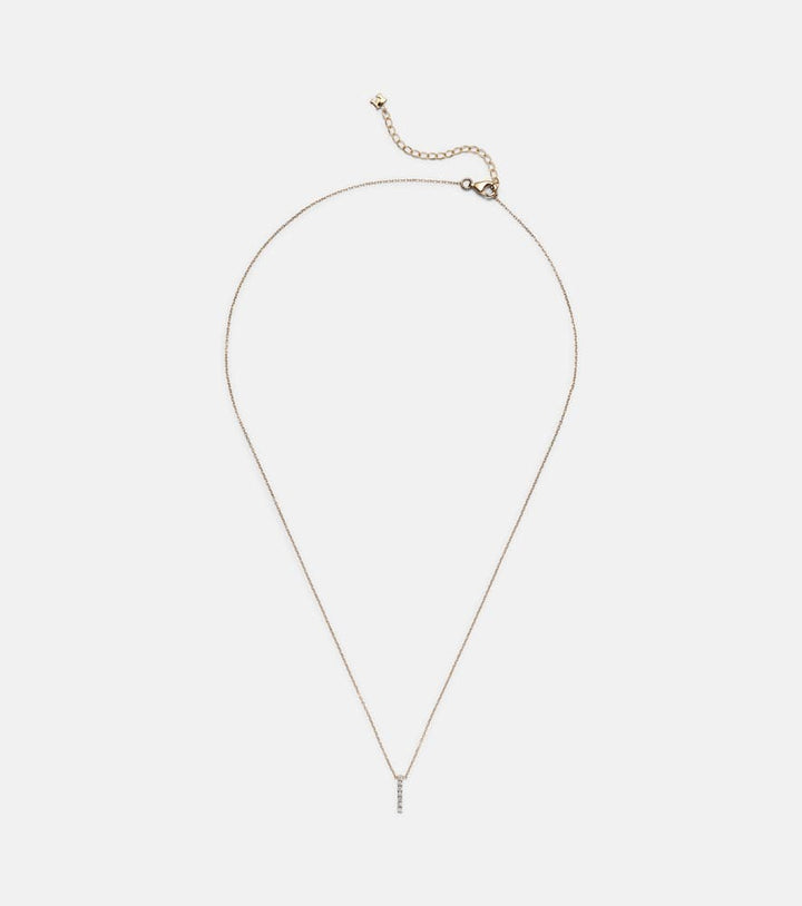 Crafted from 14kt yellow gold, this necklace features 0.07ctw of round-cut, pavé-set diamonds. Made in the USA, it has a lobster-clasp fastening and an adjustable length from 41cm (16") to 46cm (18") with a width of 1mm (0.05") and a pendant that measures 10mm (0.4") in length and 1mm (0.05") in width.