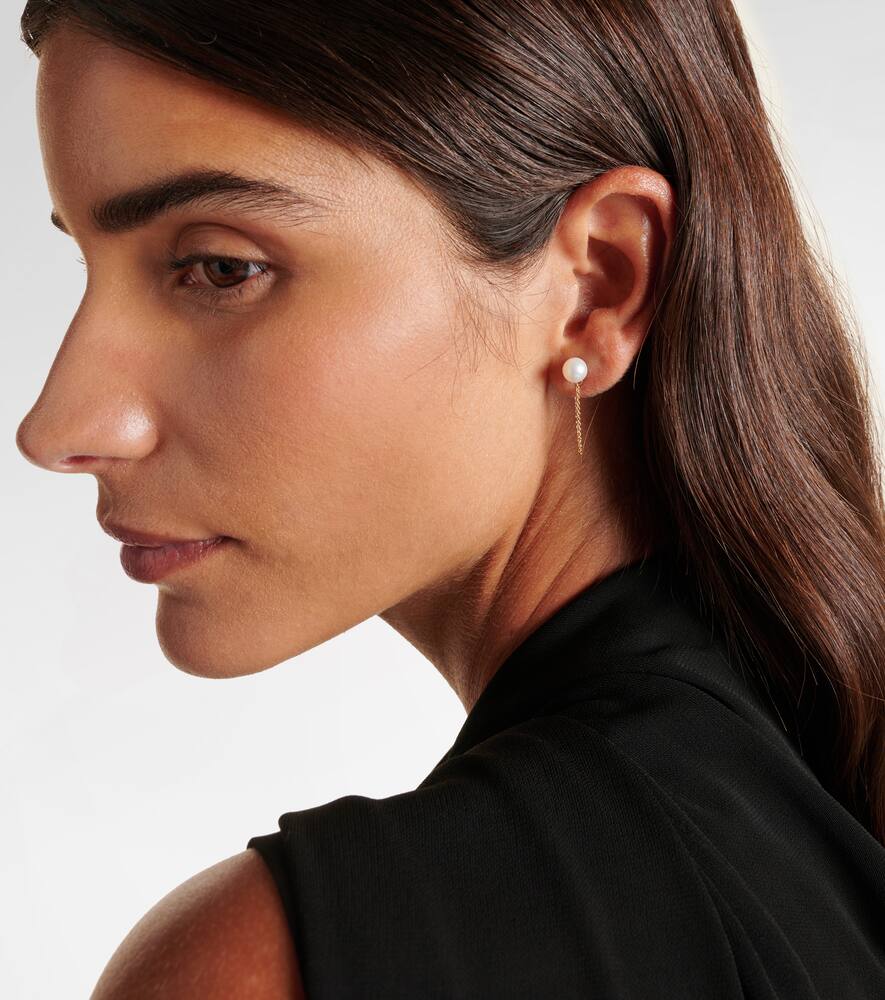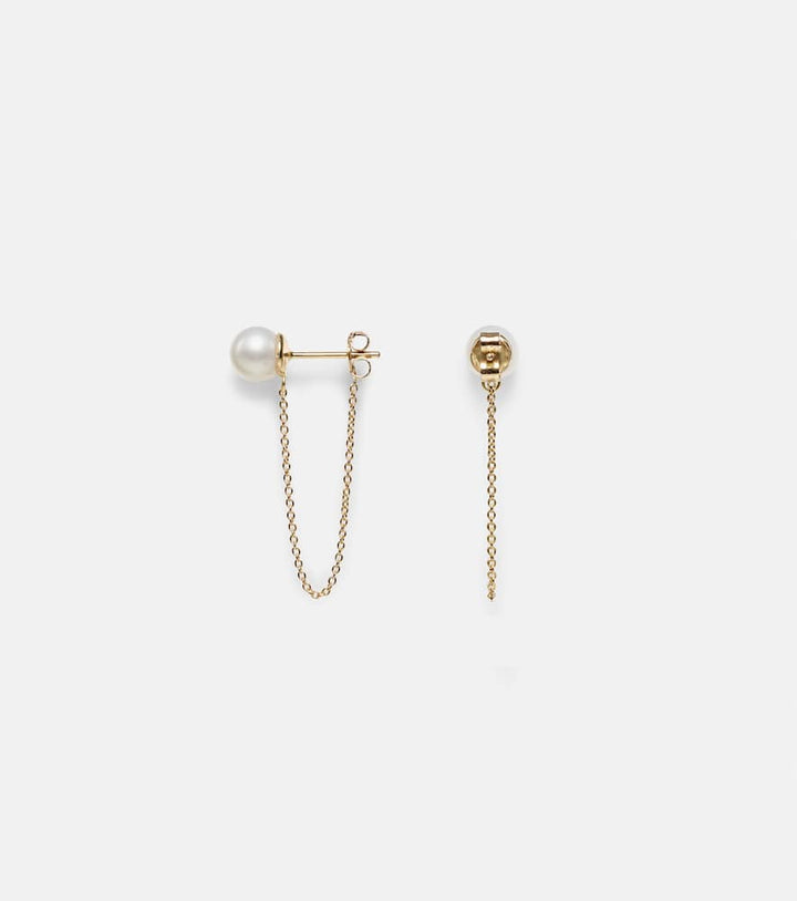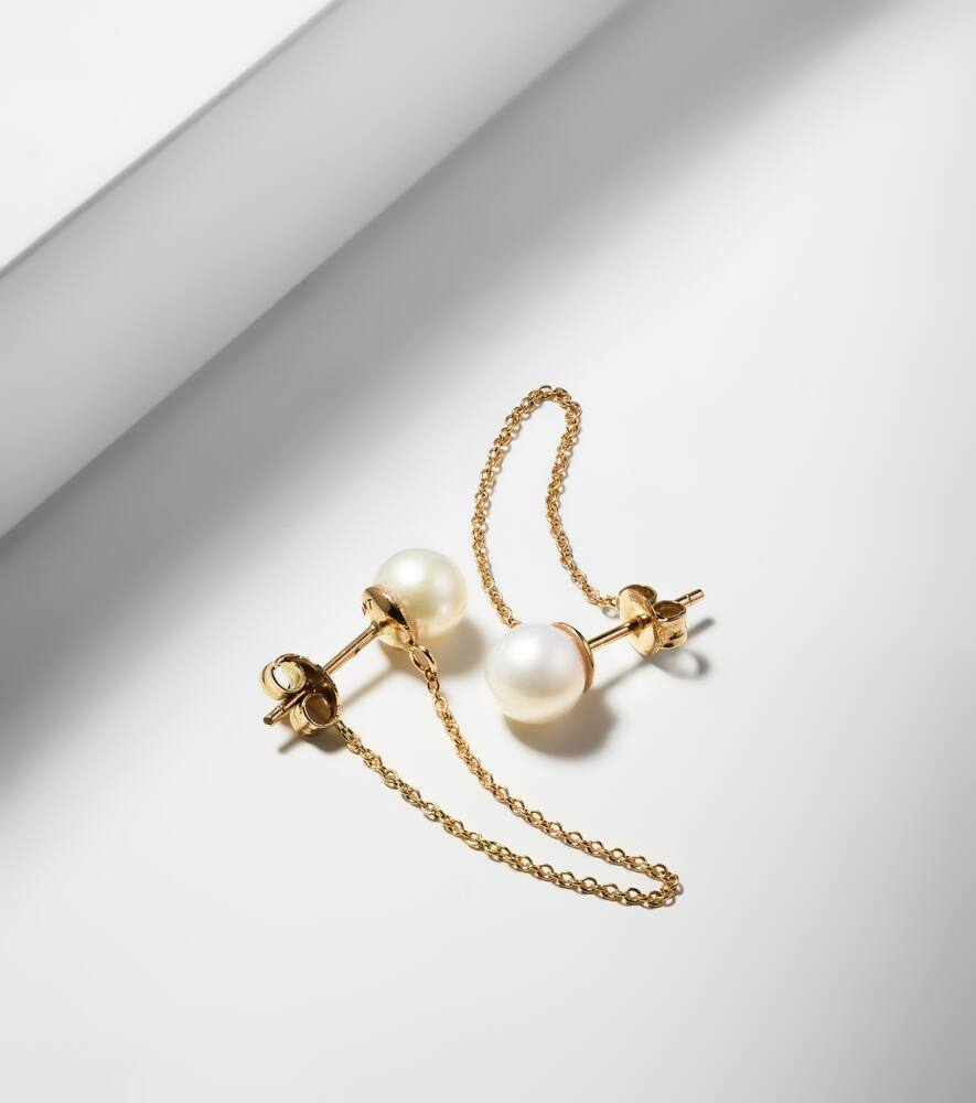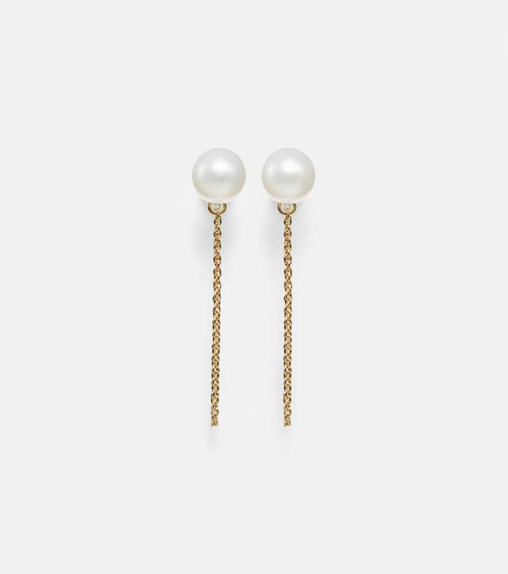 These 14kt gold drop earrings with pearls by Mateo are a delightful and whimsical accessory. The earrings feature a delicate 14kt yellow gold chain from which a beautiful, lustrous freshwater pearl is suspended. The subtle drop design and classic elegance of the pearl make them a perfect choice for adding a touch of refined simplicity to any look. They are ideal for both everyday wear and special occasions, embodying a sense of timeless sophistication.