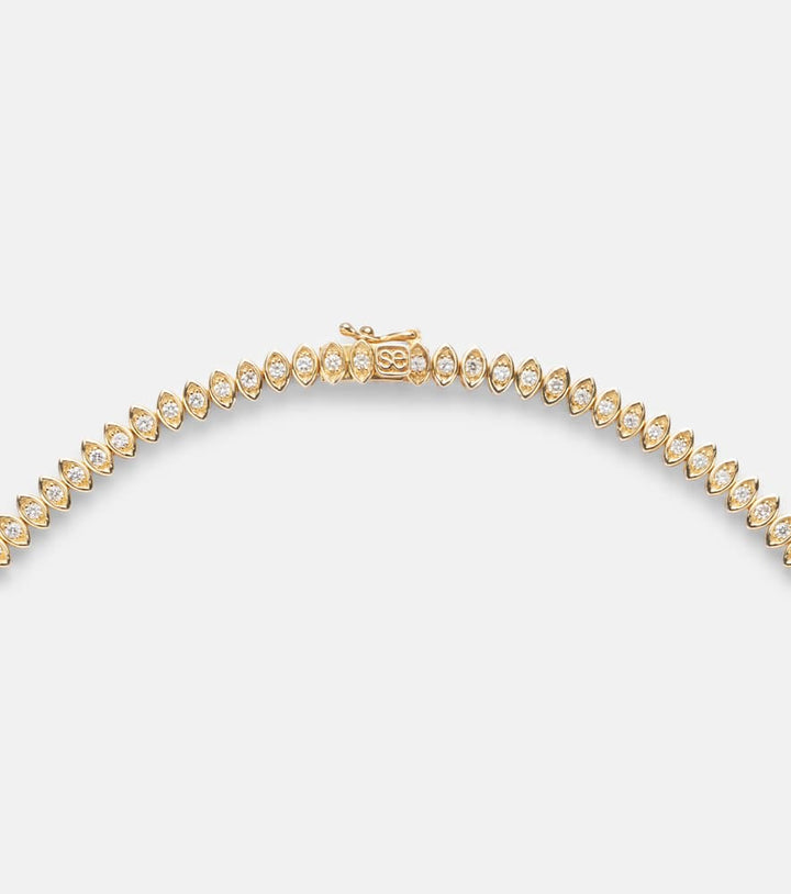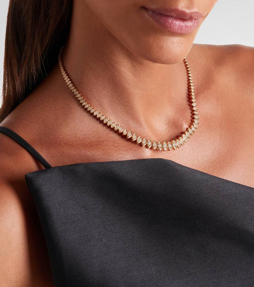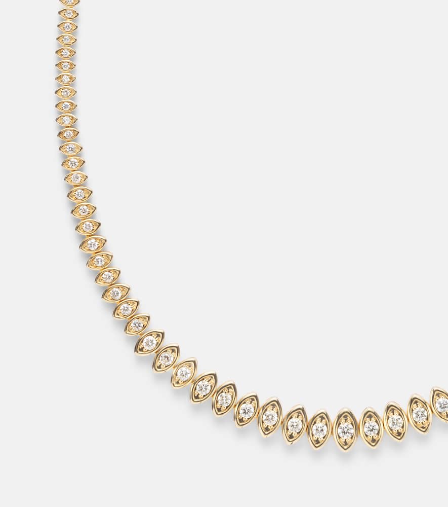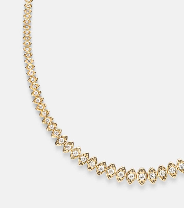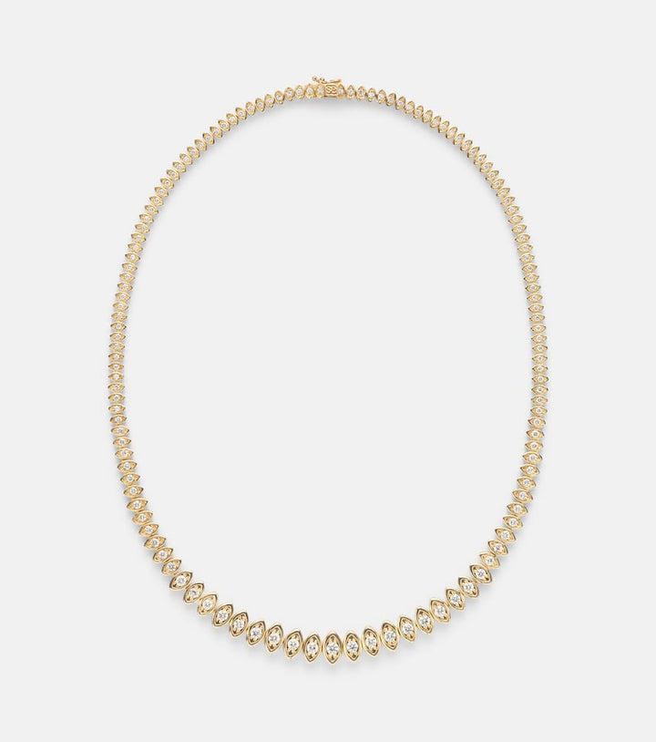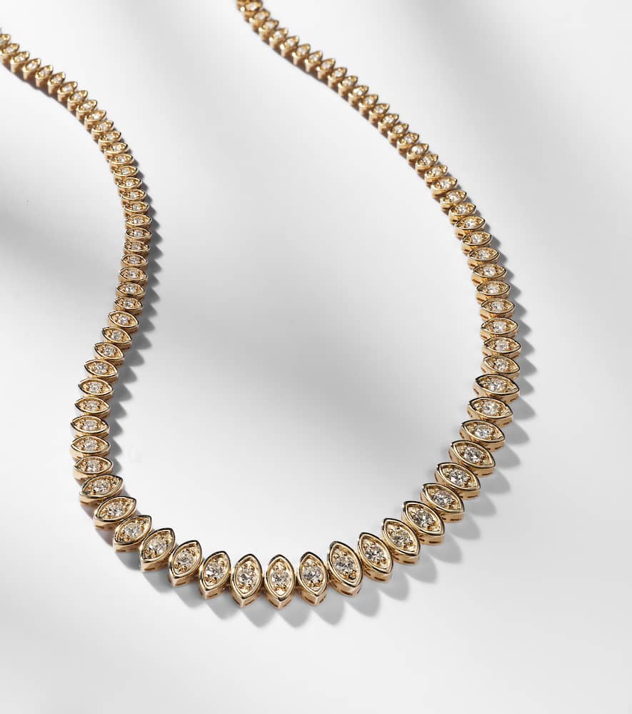 Crafted from 14kt yellow gold, this necklace features 1.23ct of round-cut, bead-set natural diamonds. Made in the USA, it measures 41cm (16") when open with a max. width of 8mm (0.3").