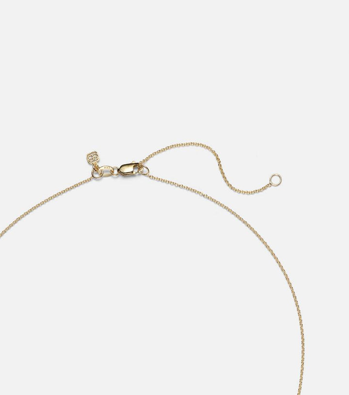 Crafted from 14kt yellow gold, this necklace features diamonds. Made in the USA, it has an adjustable length from 41cm (16") to 46cm (18") with a width of 1mm (0.05") and a pendant that measures 12mm (0.45") in length and 10mm (0.4") in width.