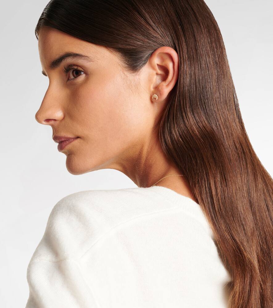 This Croissant Small 14kt gold single stud earring with diamonds by Sydney Evan is a delicate and charming accessory. The single stud earring features a small, croissant-shaped design in 14kt yellow gold, beautifully accented with sparkling diamonds. This piece is both whimsical and luxurious, perfect for adding a subtle touch of elegance and personal style to your ear stack. It's a versatile piece that can be worn alone or paired with other earrings for a unique, curated look.
