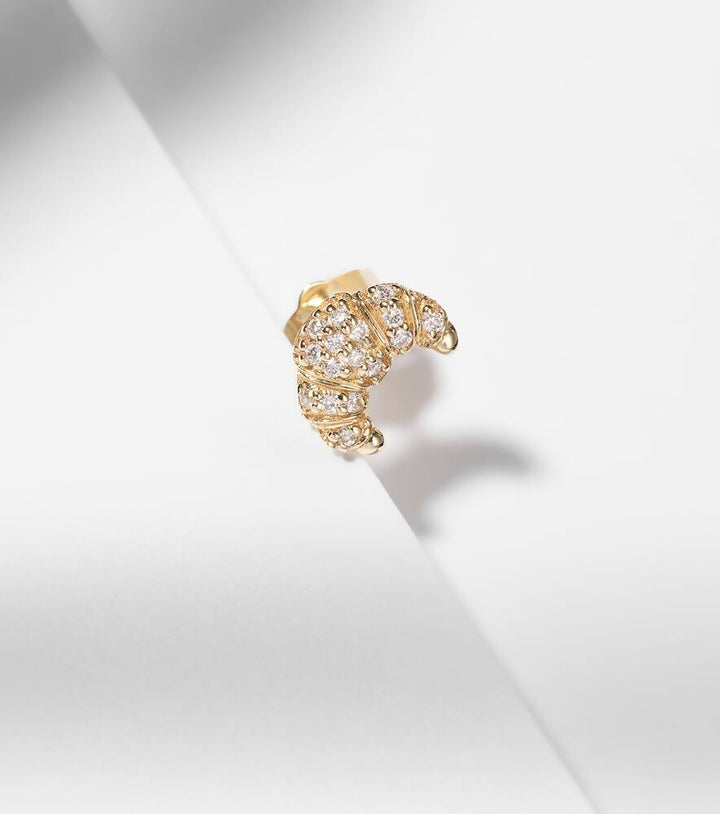 Croissant Small 14kt gold single stud earring with diamonds