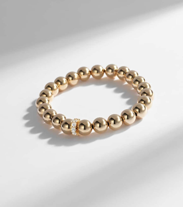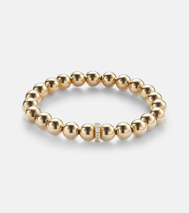 Crafted from 14kt yellow gold, this elasticated beaded bracelet features 0.53ctw of diamonds. Made in Hong Kong, it has a circumference of 20.5cm (8") with a max. width of 8mm (0.3").