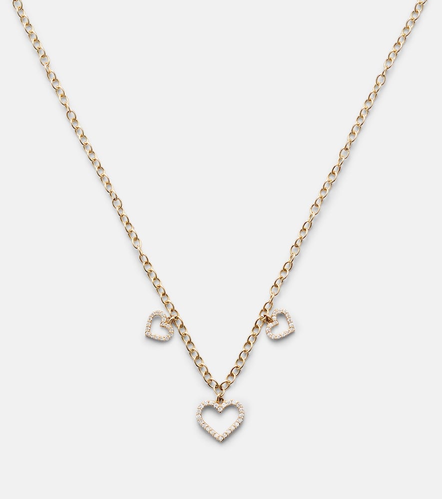 This Three Hearts 14kt gold necklace with diamonds by Sydney Evan is a beautifully sentimental and charming piece. The necklace features a delicate 14kt yellow gold chain from which three heart-shaped pendants are suspended, each one adorned with brilliant diamonds. This design is a powerful symbol of love, family, and connection. It’s a perfect accessory for celebrating cherished bonds and adding a touch of personal meaning and sparkle to your everyday style.