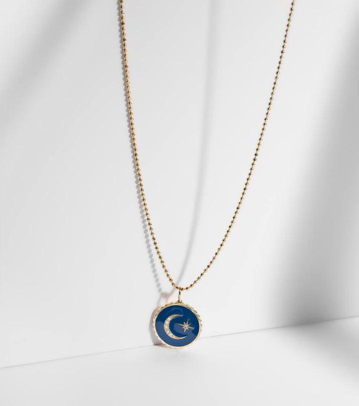 Celestial Medallion 14kt gold chain necklace with diamonds