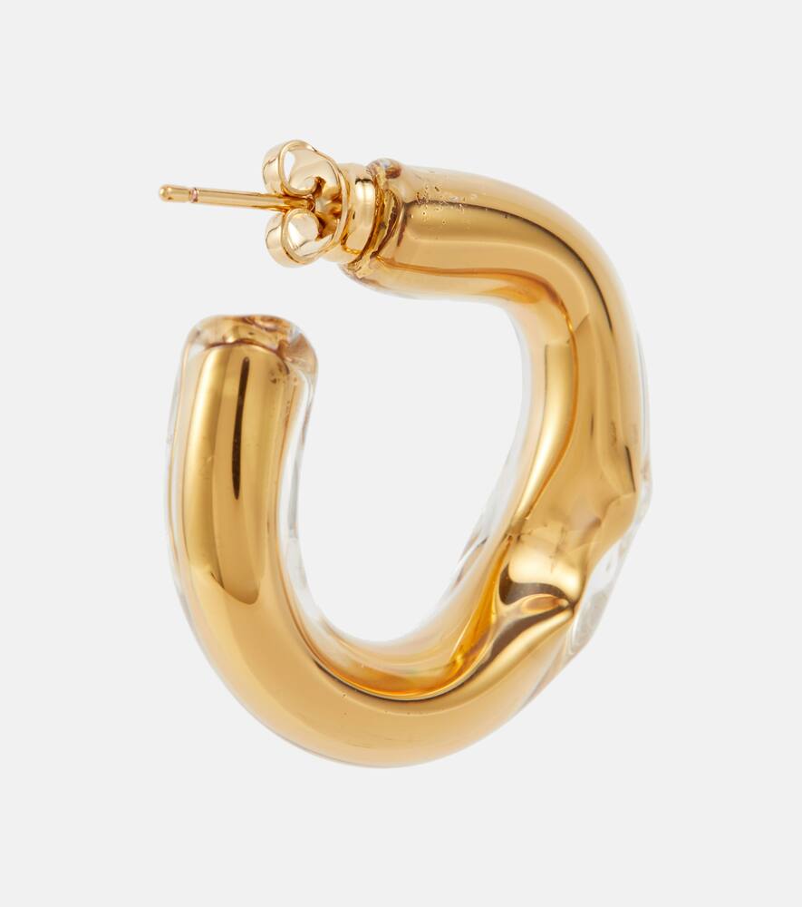 These Hiroki hoop earrings by Isabel Marant embody a modern bohemian aesthetic, blending simple elegance with unique, textural details. The classic hoop silhouette is elevated with eye-catching glass beads, creating a look that is both natural and sophisticated. These earrings are designed for the woman who appreciates a relaxed yet refined style. They add a touch of artistic flair and subtle color, symbolizing a connection to nature and a free-spirited approach to accessorizing.