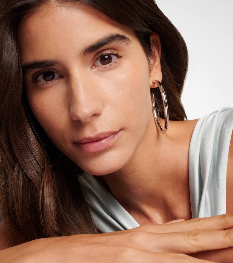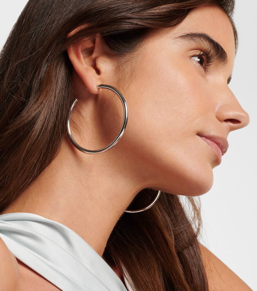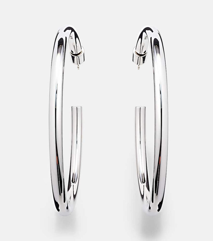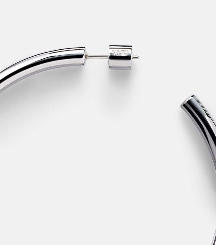 These 14kt gold-plated hoop earrings by Jennifer Fisher are a bold and timeless classic that offer a touch of everyday luxury. The striking, large-scale silhouette in a polished silver tone provides a modern and confident look. Their versatile design makes them a perfect centerpiece for any outfit, from casual to formal. These earrings symbolize a commitment to clean lines and a sophisticated aesthetic, making them a must-have for any jewelry collection.