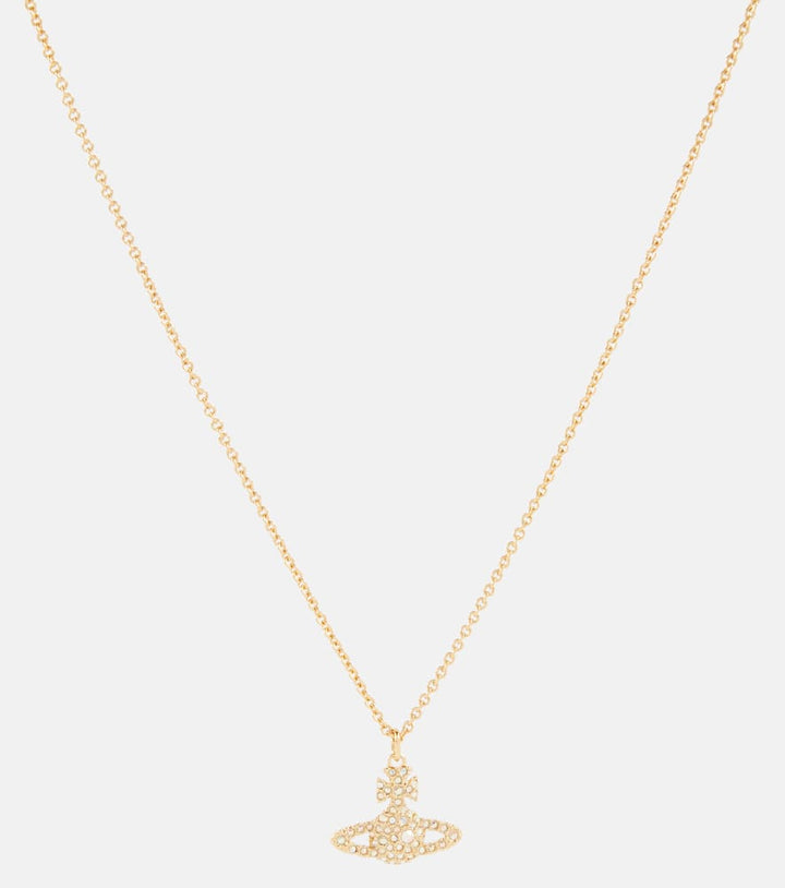 This Grace Bas Relief pendant necklace by Vivienne Westwood is an iconic piece that captures a rebellious yet romantic spirit. The famous Orb emblem, adorned with a brilliant crystal, serves as a striking centerpiece. The gold-tone brass provides a warm and luxurious feel, while the crystal adds a touch of sparkle. This necklace symbolizes a blend of tradition and subversion, a signature of the brand's aesthetic. It’s a perfect accessory for adding a touch of unique character to any look.