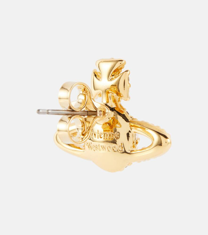 These Grace Bas Relief earrings by Vivienne Westwood are a classic yet rebellious accessory that beautifully showcases the brand’s iconic Orb emblem. Crafted in polished gold-tone brass, the design is both elegant and modern. These earrings are a powerful statement of style, perfect for adding a touch of luxury and unique character to any ensemble. They symbolize a bold and confident aesthetic.