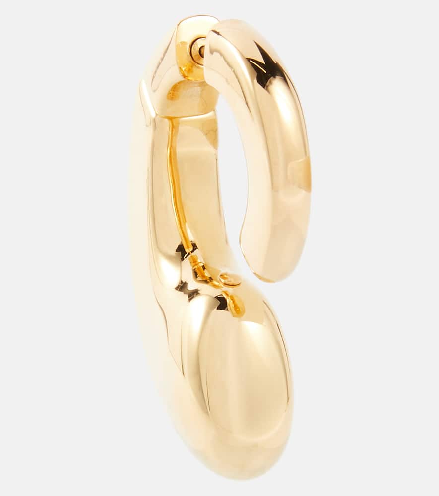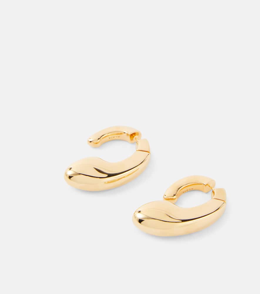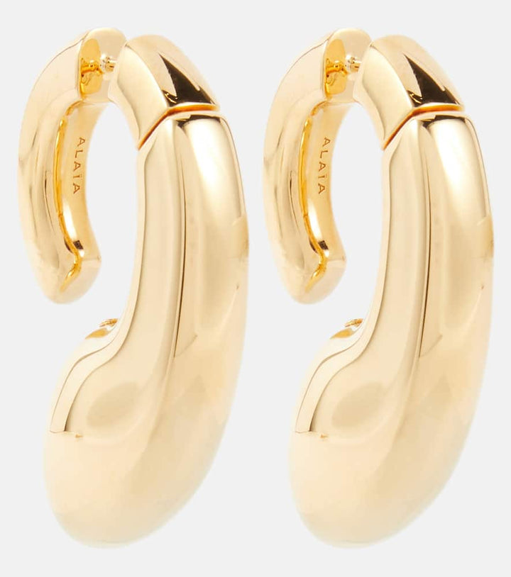These Drip gold-plated earrings by Alaïa are a beautifully minimalist and sculptural piece that exudes a sense of fluidity and modern elegance. The unique "drip" silhouette, crafted from gold-plated brass, offers a captivating and artistic look. The earrings are designed for the woman who appreciates clean lines and an unconventional approach to design. They symbolize a quiet confidence and a love for contemporary, wearable art.